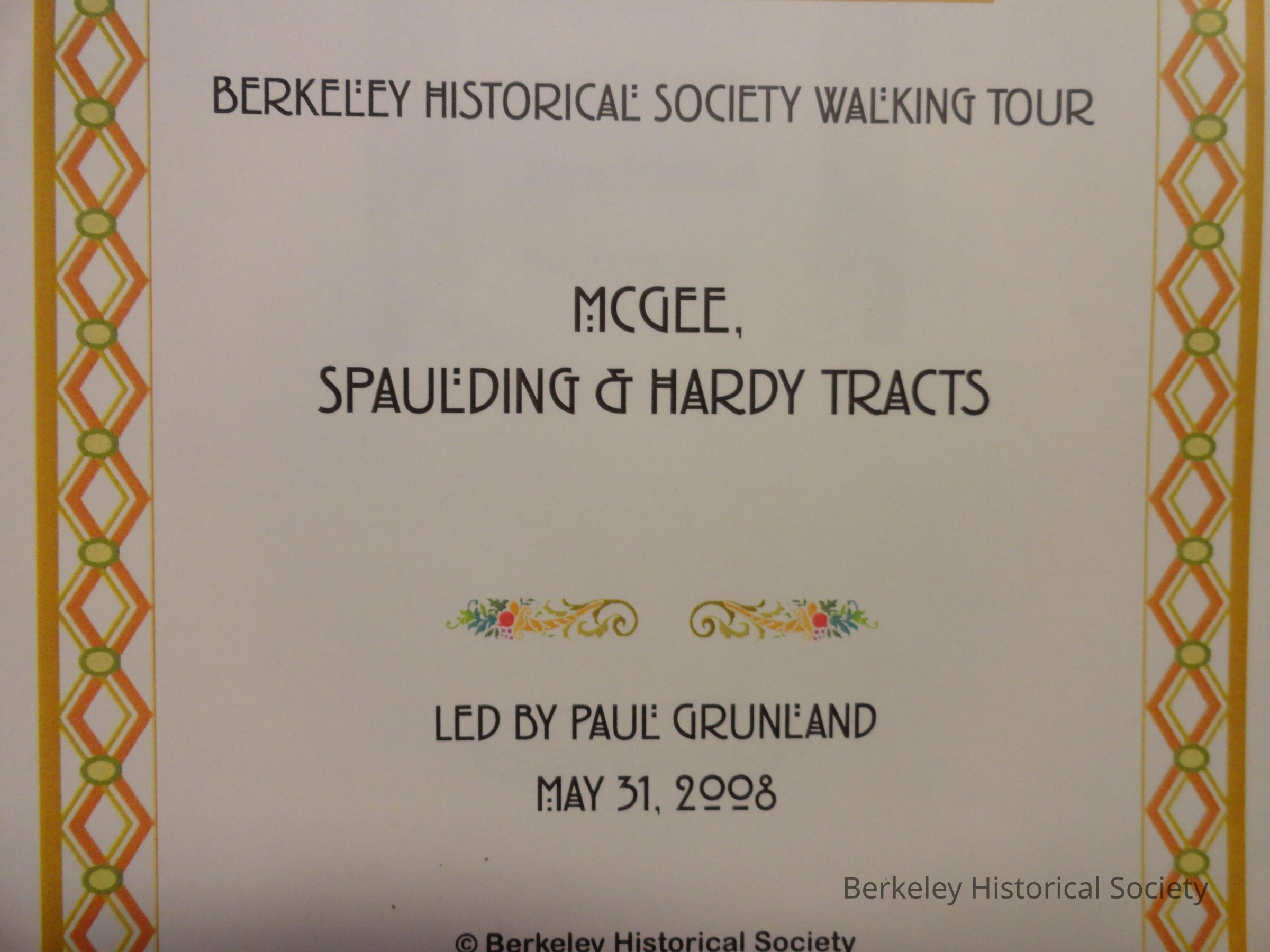 A Berkeley Historical Society walking tour led by Paul Grunland, May 31, 2008