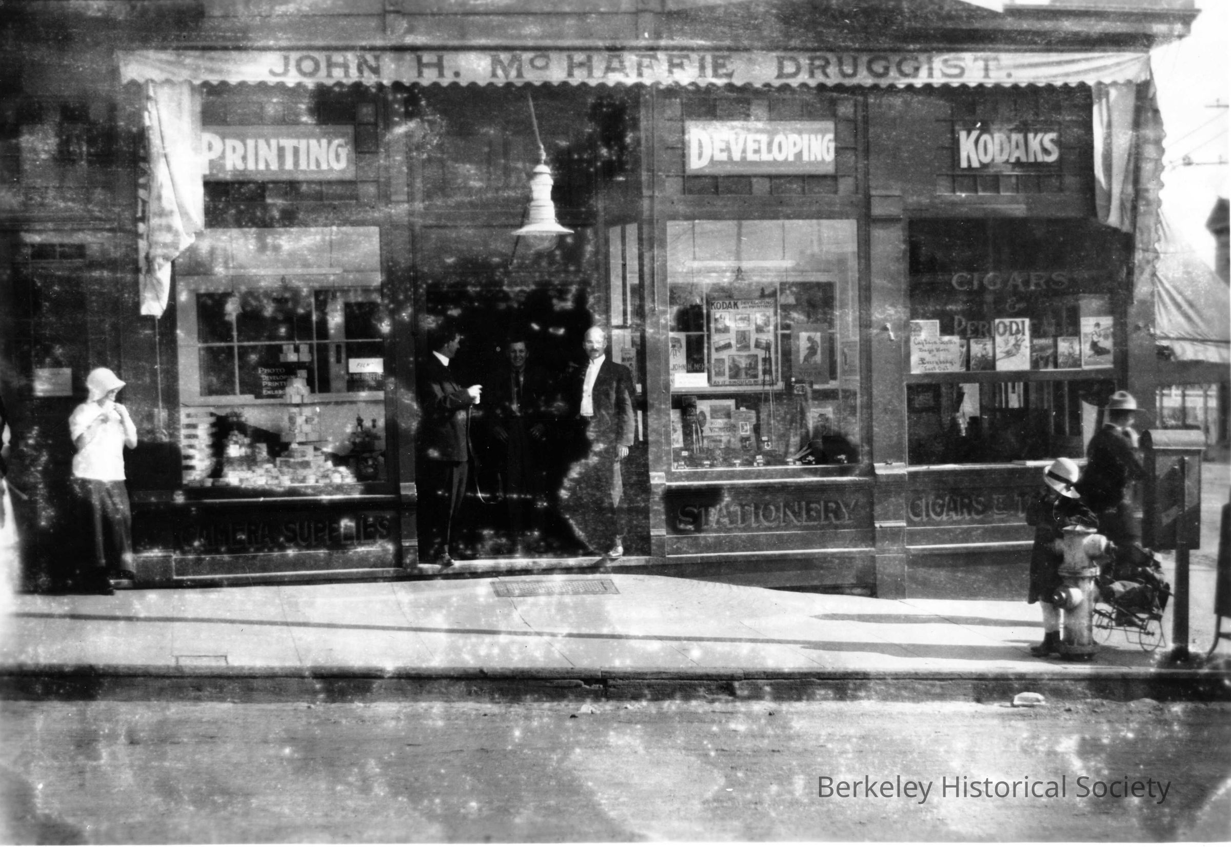 McHaffie Druggist; people. Vine Street at Shattuck.