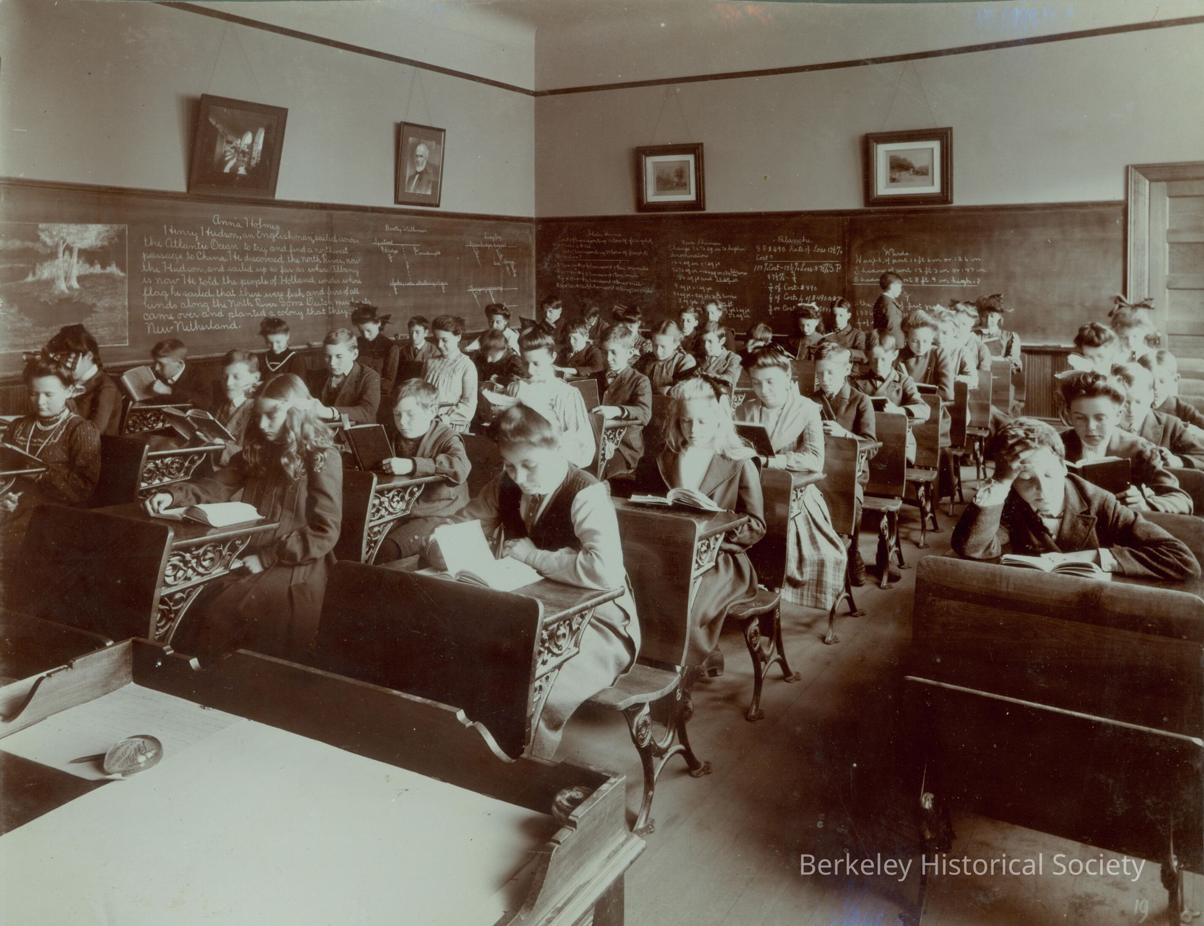 Math and history class; students reading.