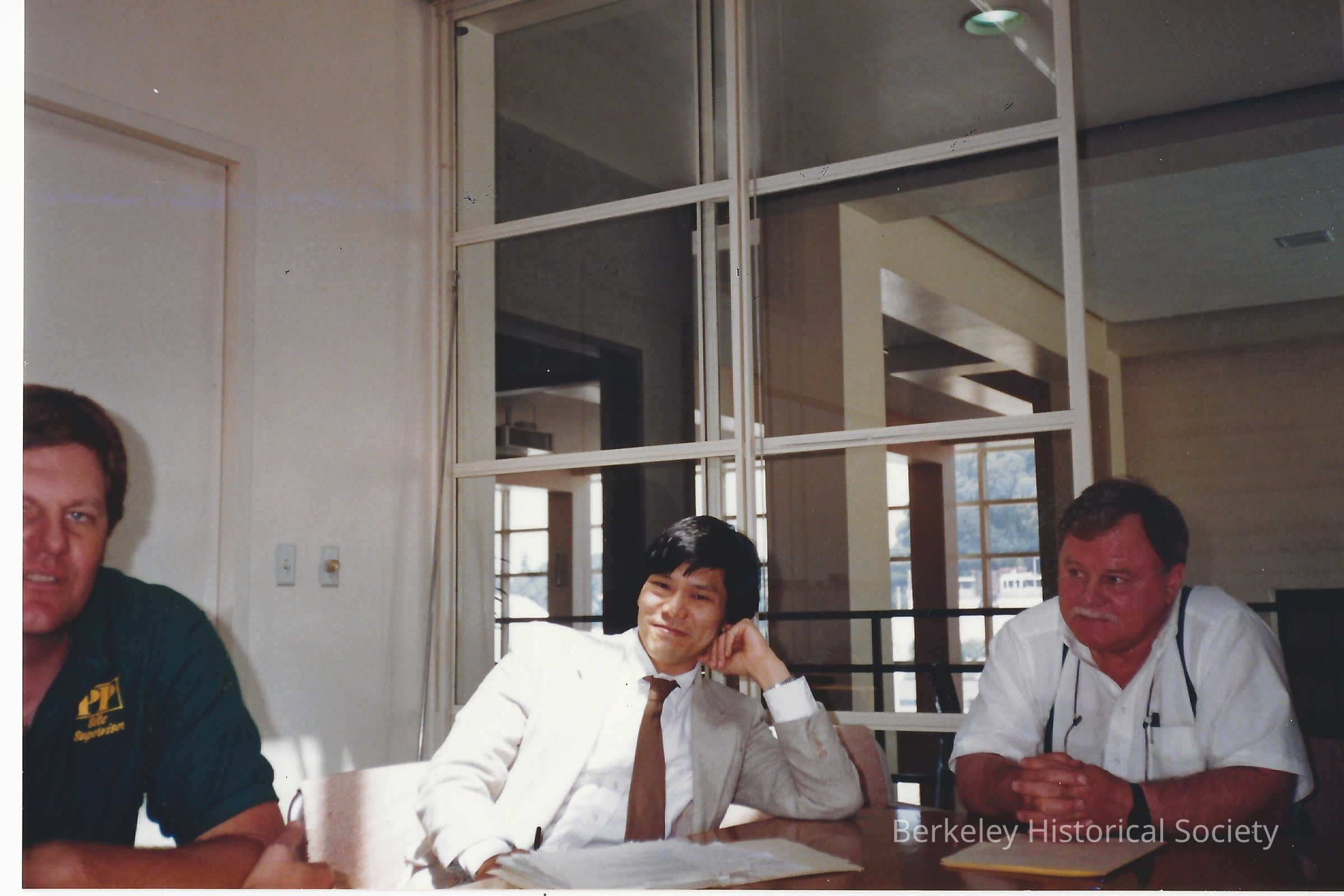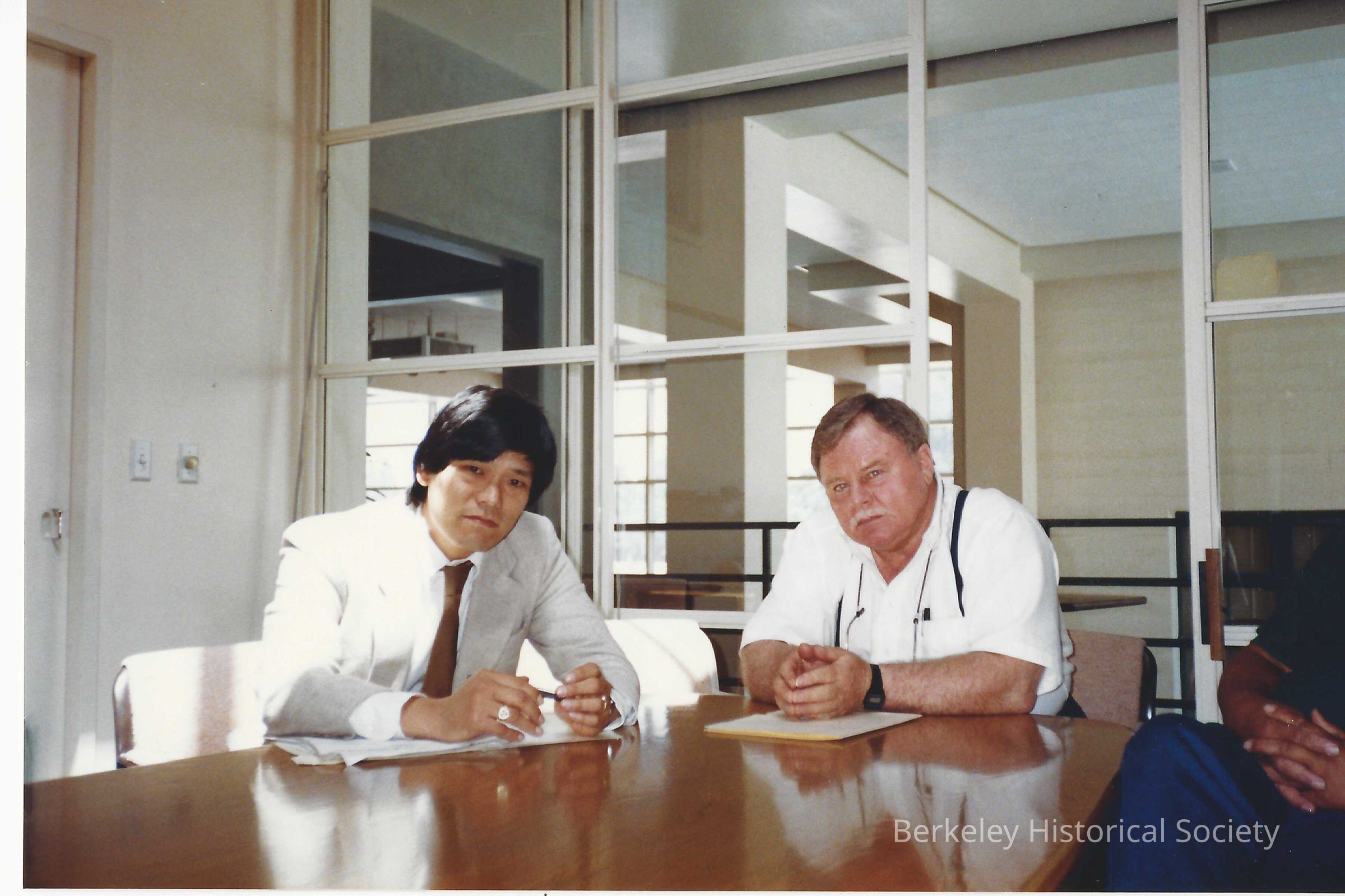 2 photos, color, with Frank Haeg; Fujii apparently representing University of California, Haeg the city.