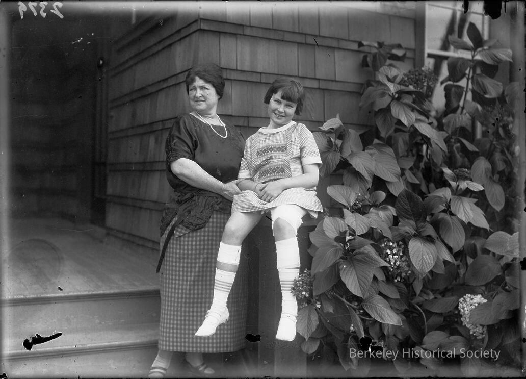 Unidentified woman and child on porch of house.. Received with photos of 1923 fire, but house appears undamaged.Other Names and Numbers