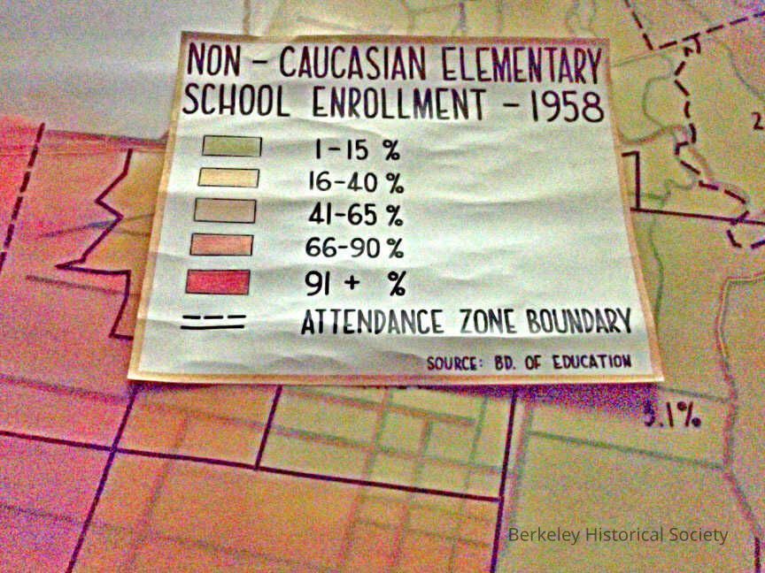 Map and plastic overlay with colored by percentage of enrollment, with statistical figures on separate sheet of paper.