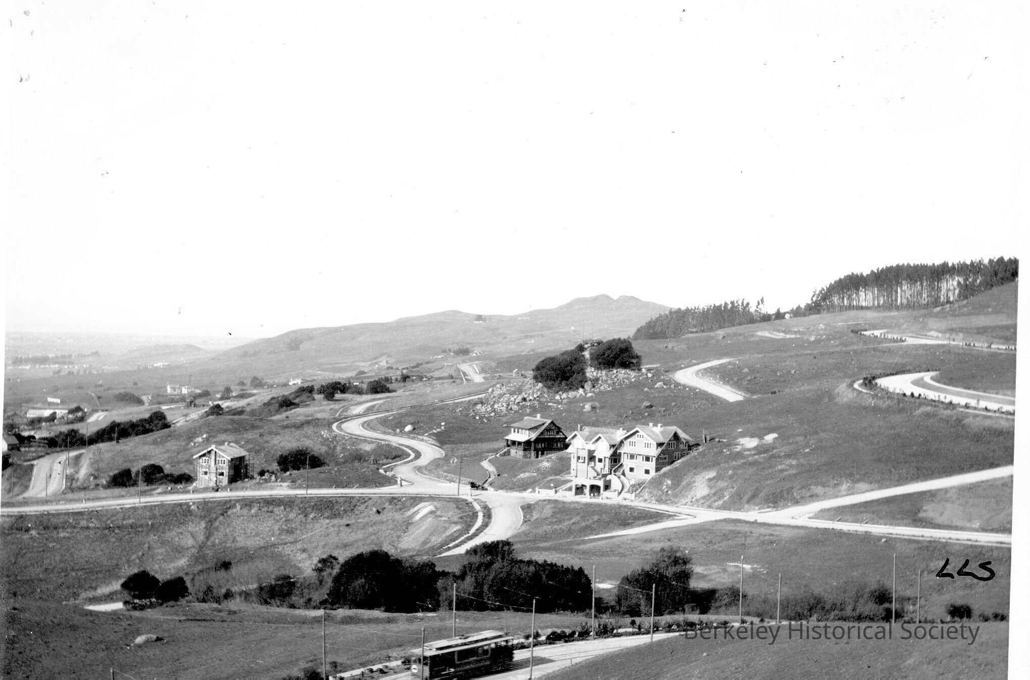 View looking northward, with only a few houses on laid-out streets; streetcar on Arlington Avenue at bottom of the photo.Other Names and Numbers