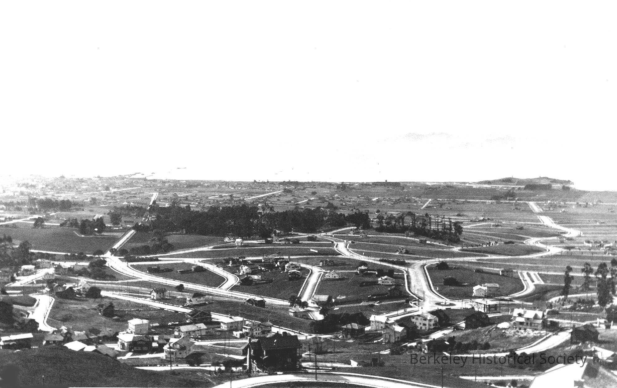 Aerial, Marin Avenue Northbrae. Streets laid out, not many houses.