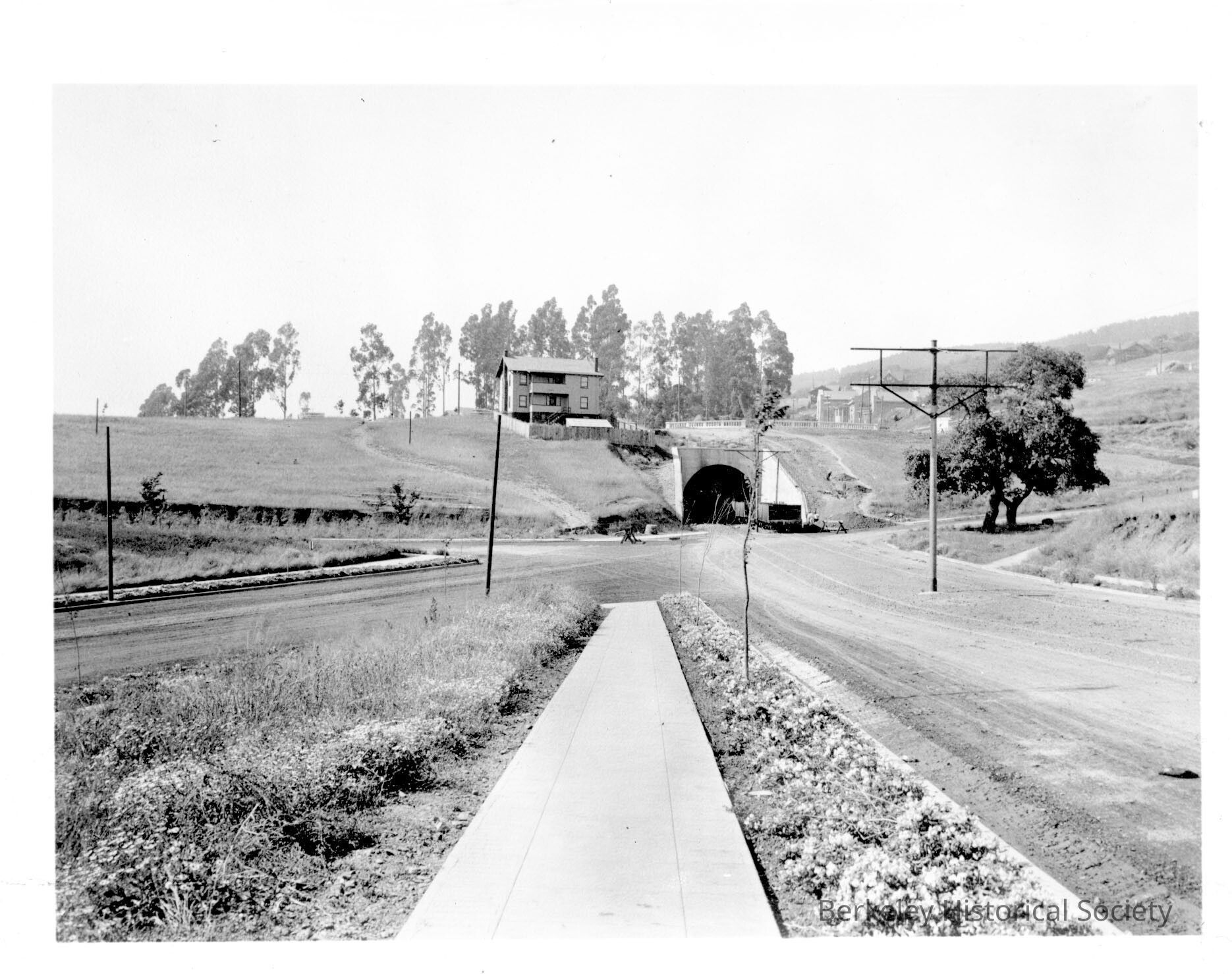 View north on Sutter to tunnel; only one house above tunnel, no buildings on Sutter or surrounding streets.