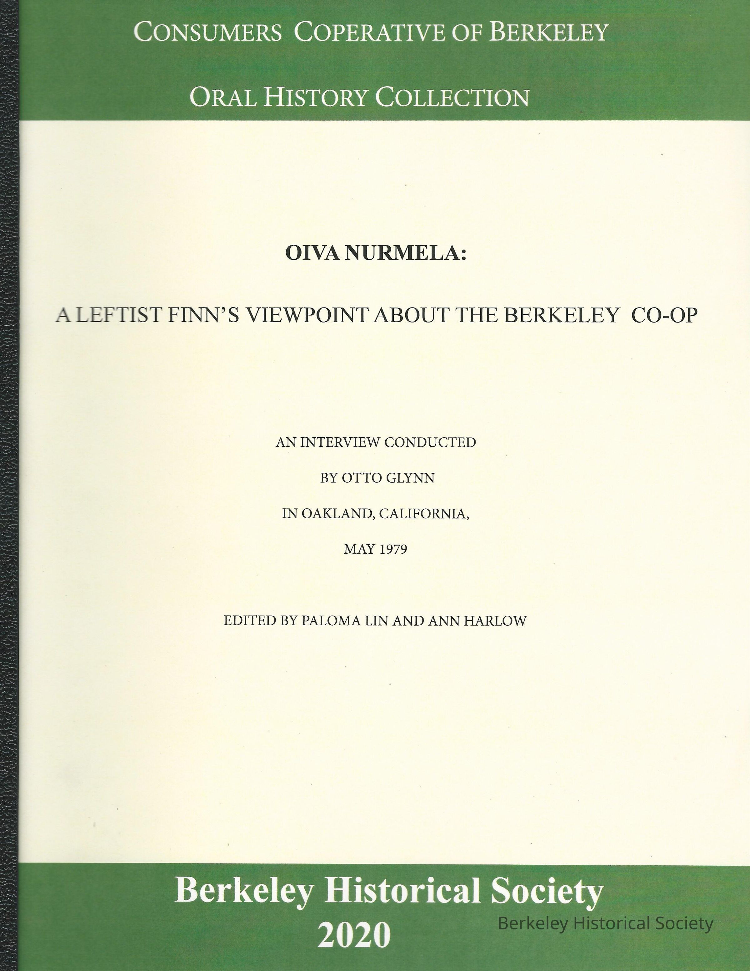 A Leftist Finn's viewpoint about the Berkeley Co-op. Edited by Paloma Lin and Ann Harlow. Berkeley Historical Society, 2020. 40 l. ; 29 cm. OH - Nurmela