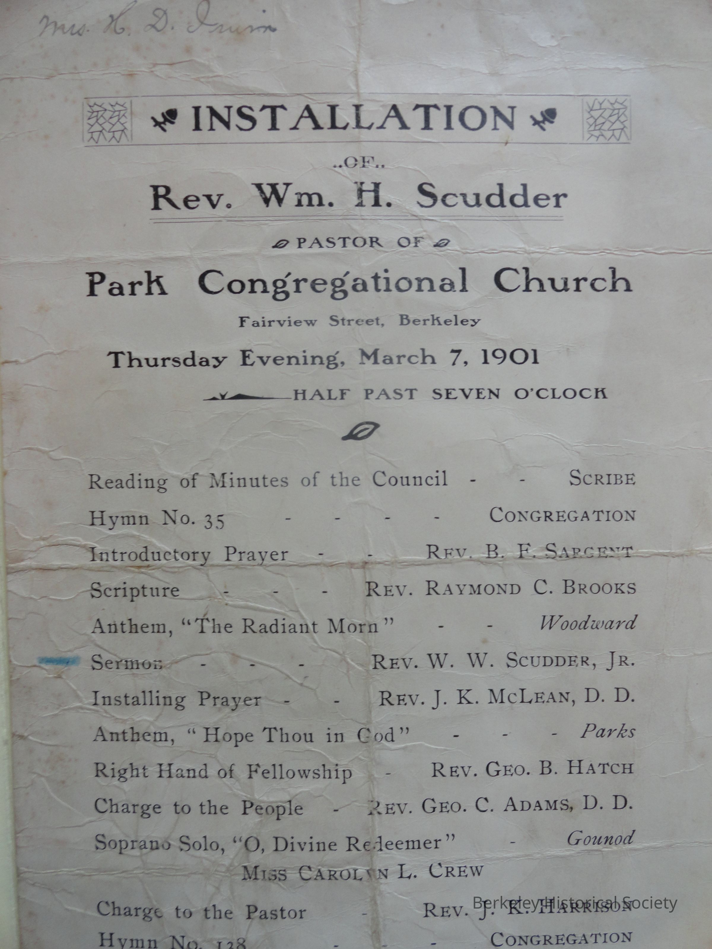 Admin or Bio Notes: The church was established in 1883 in the Lorin District; a new building was designed by Storch in 1912. The church later was called the South Berkeley Congregational Church.