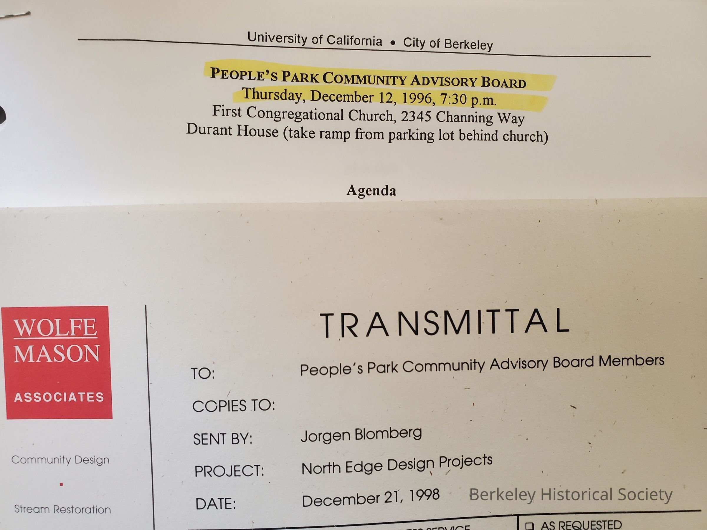 People's Park Community Advisory Board records, 1996-2001Entry/Object ID
