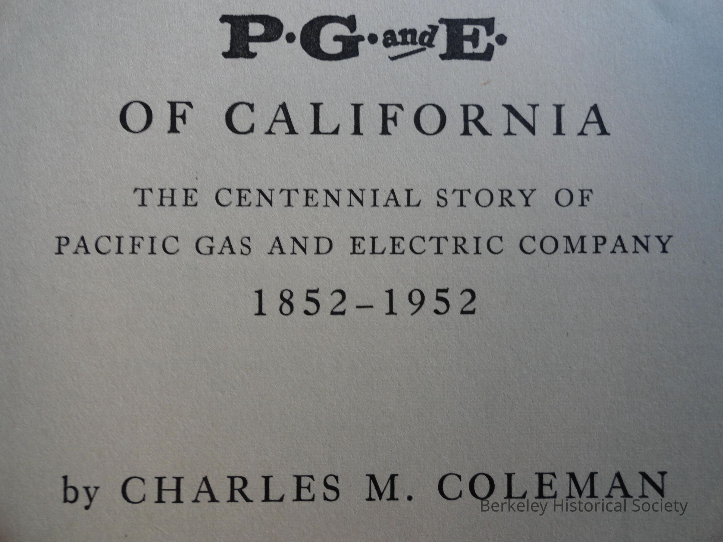 PG & E of California, 1852-1952