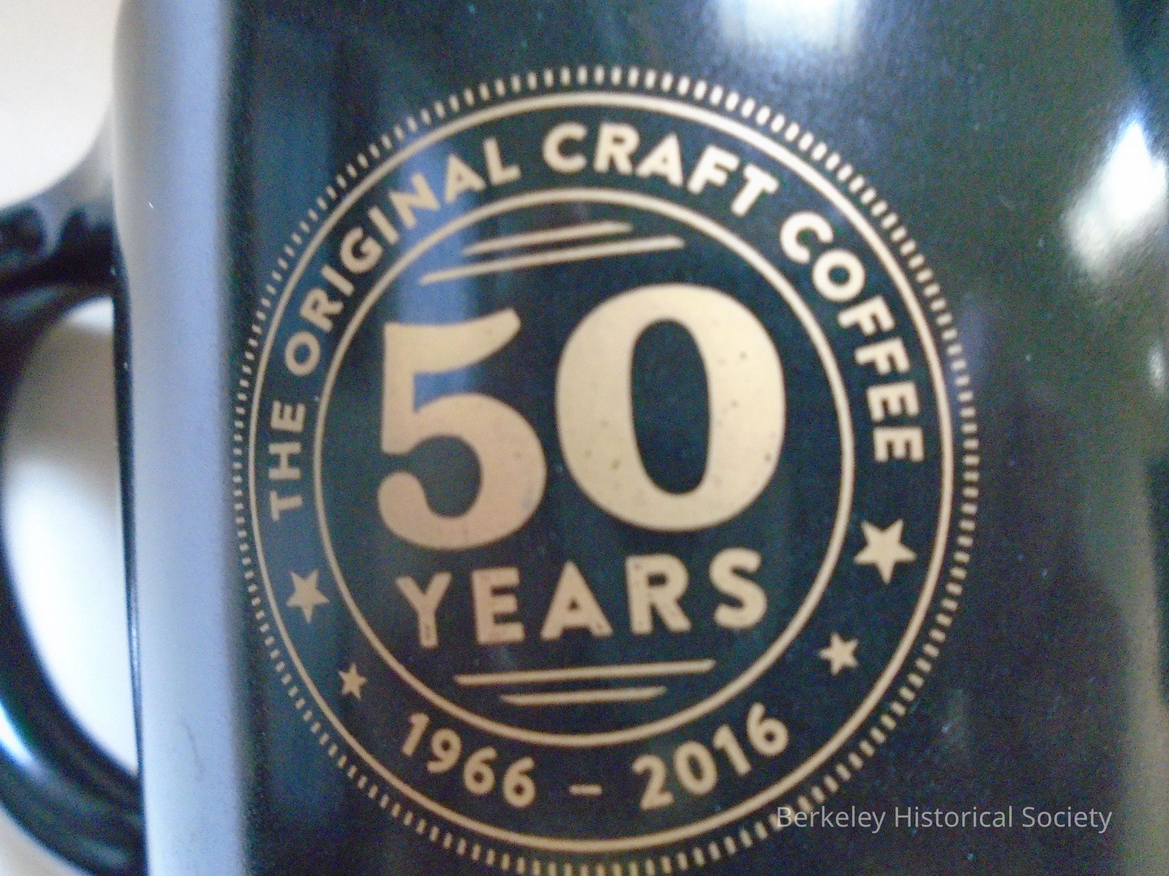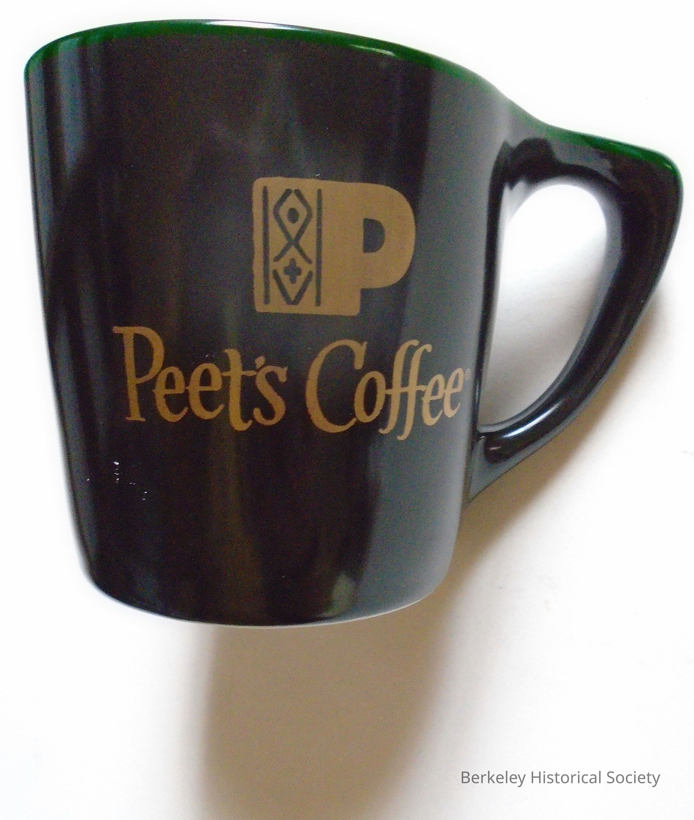 Peet's Coffee and Tea 50th anniversary porcelain cup. Black with gold lettering. Label on bottom shows $16.95 made in Sri Lanka. On one side "Peet's Coffee" with logo and on the other side "50 years, The Original Craft Coffee 1966-2016".Dimensions