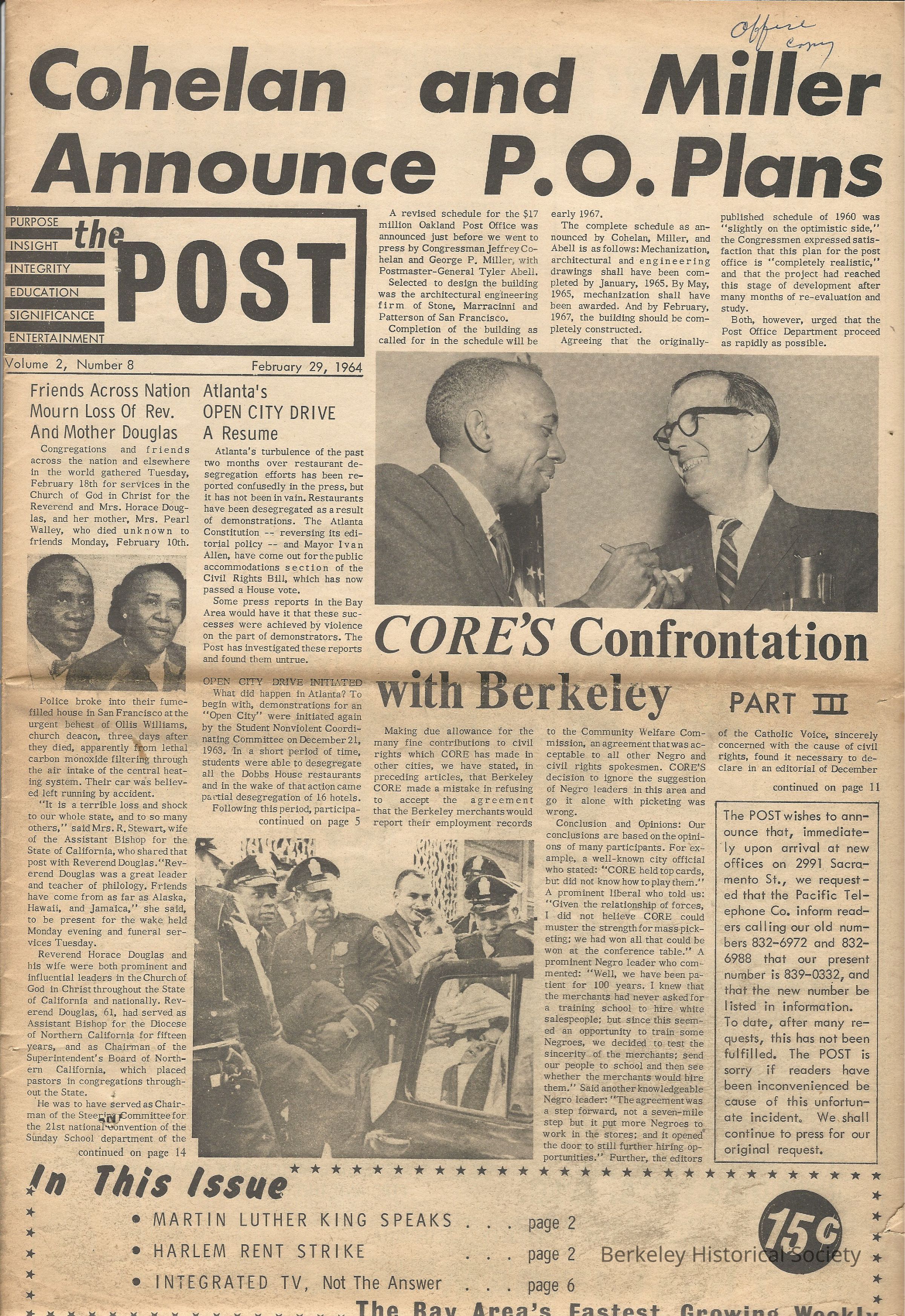 Tom Berkley, editor and publisher. Tom Nash, managing editor. BHS has: Feb 29-May 7, 1964.