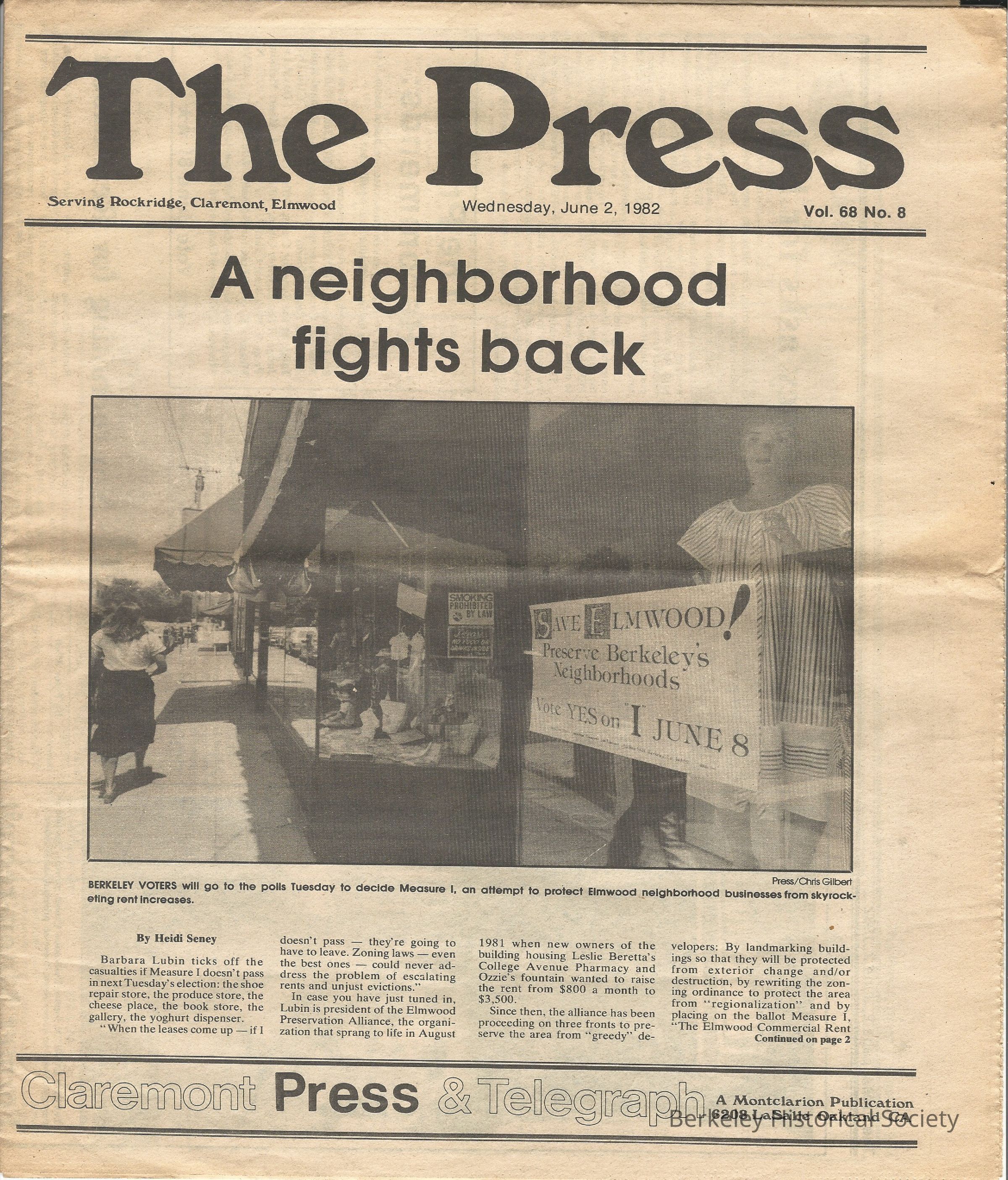 "Serving Rockridge, Claremont, Elmwood" BHS has: 1981: Aug. 5; 1982: May 26, June 2, Aug. 11. Issues dealing with neighborhood preservation.