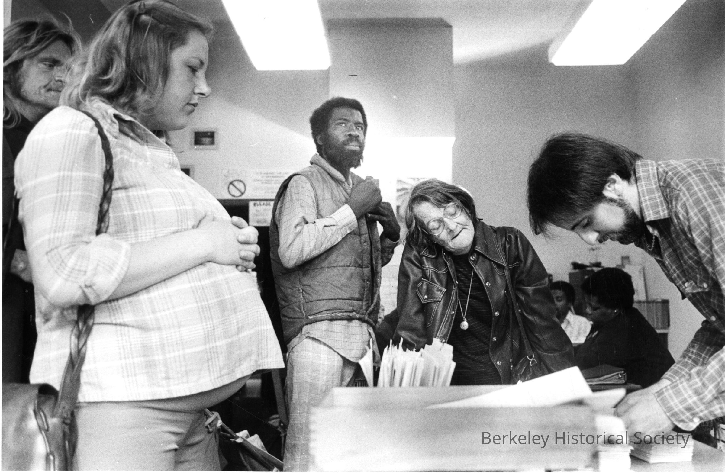 People waiting for paperwork? Unclear what activity is depicted.Other Names and Numbers