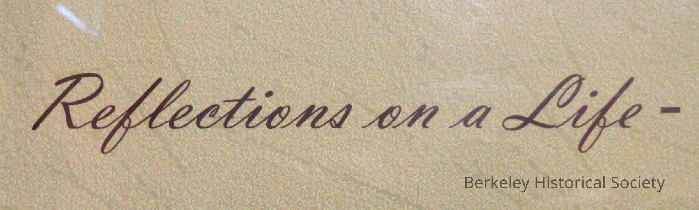 Reflections on her own life and that of her husband John in Berkeley, on her father William S. Morgan who had been pastor of the First Unitarian Church, as well as her children and grandchildren. At back: CD of this item and CD of Berkeley City Commons Club program honoring William S. Morgan, Feb 7, 1958. Church service re W.S.Morgan and photocopy of short essay on 'Religion of the Future' removed and placed in People file.