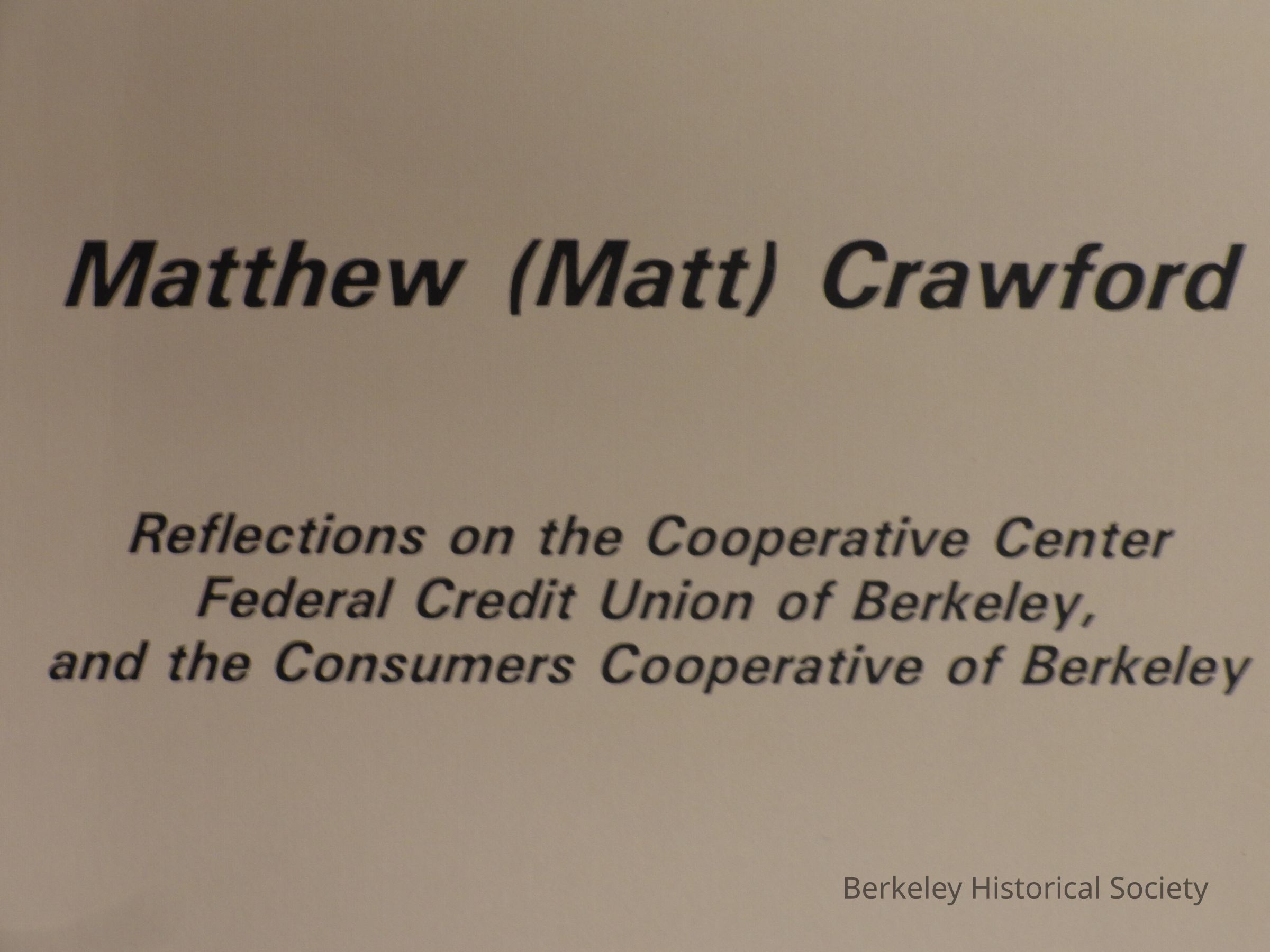 Crawford, Matt . Reflections on the Cooperative Center Federal Credit Union of Berkeley and the Consumers Cooperative of Berkeley Consumers...