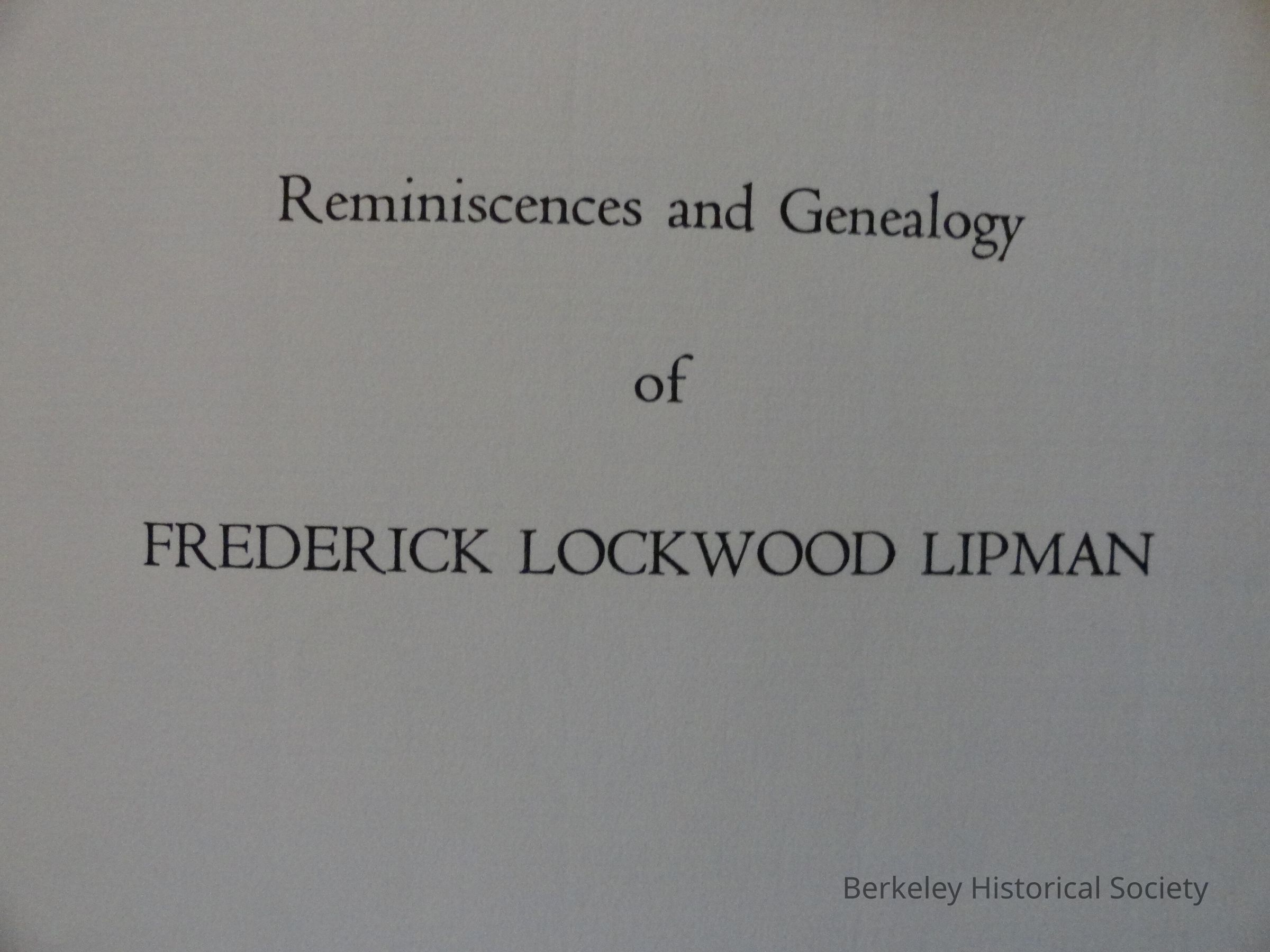 Reminiscences and Genealogy of Frederick Lockwood Lipman
