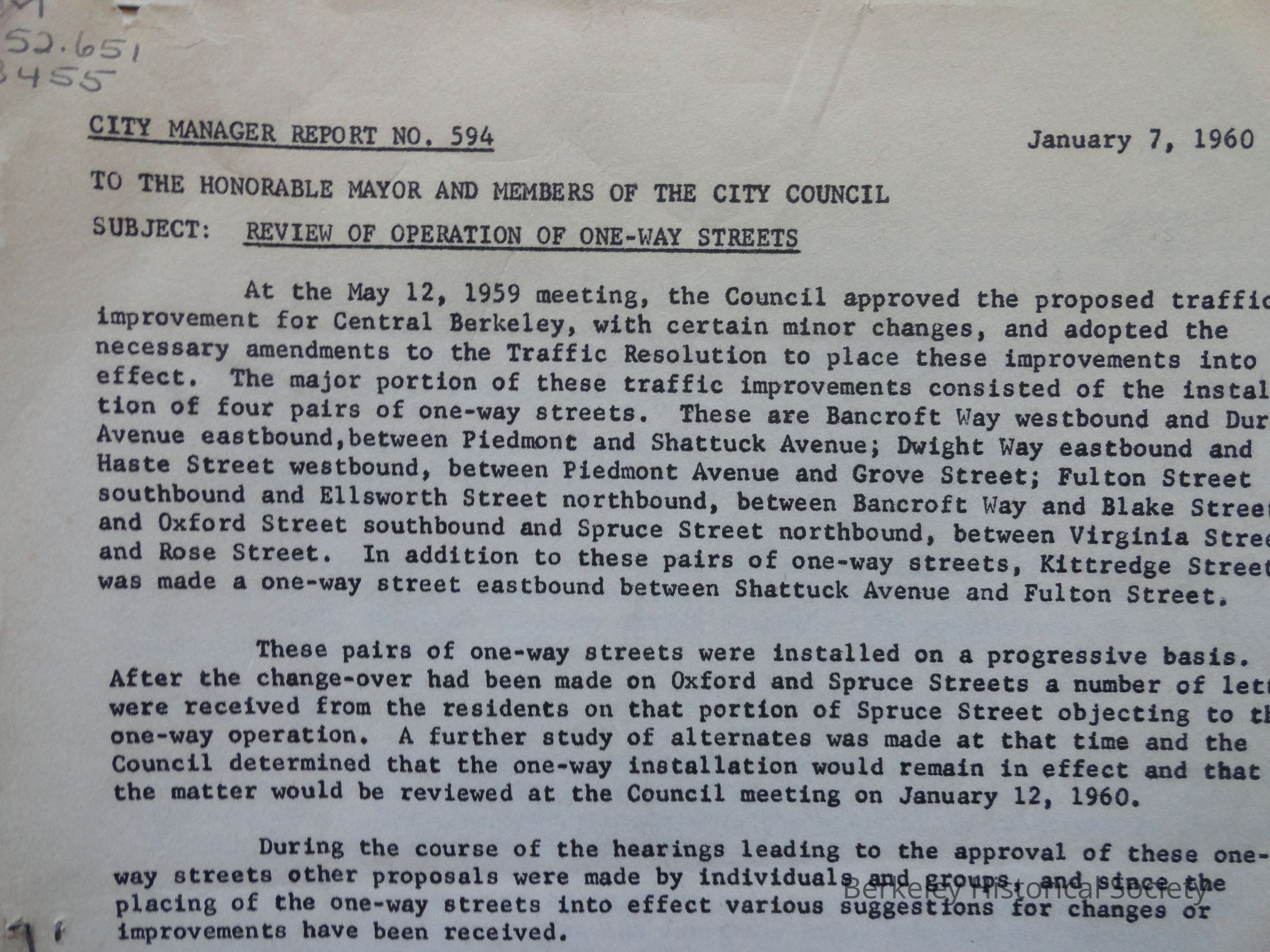 City and outside report on traffic in Berkeley. For contents click on link below. See also City of Berkeley files, 1978.061 for related reports.