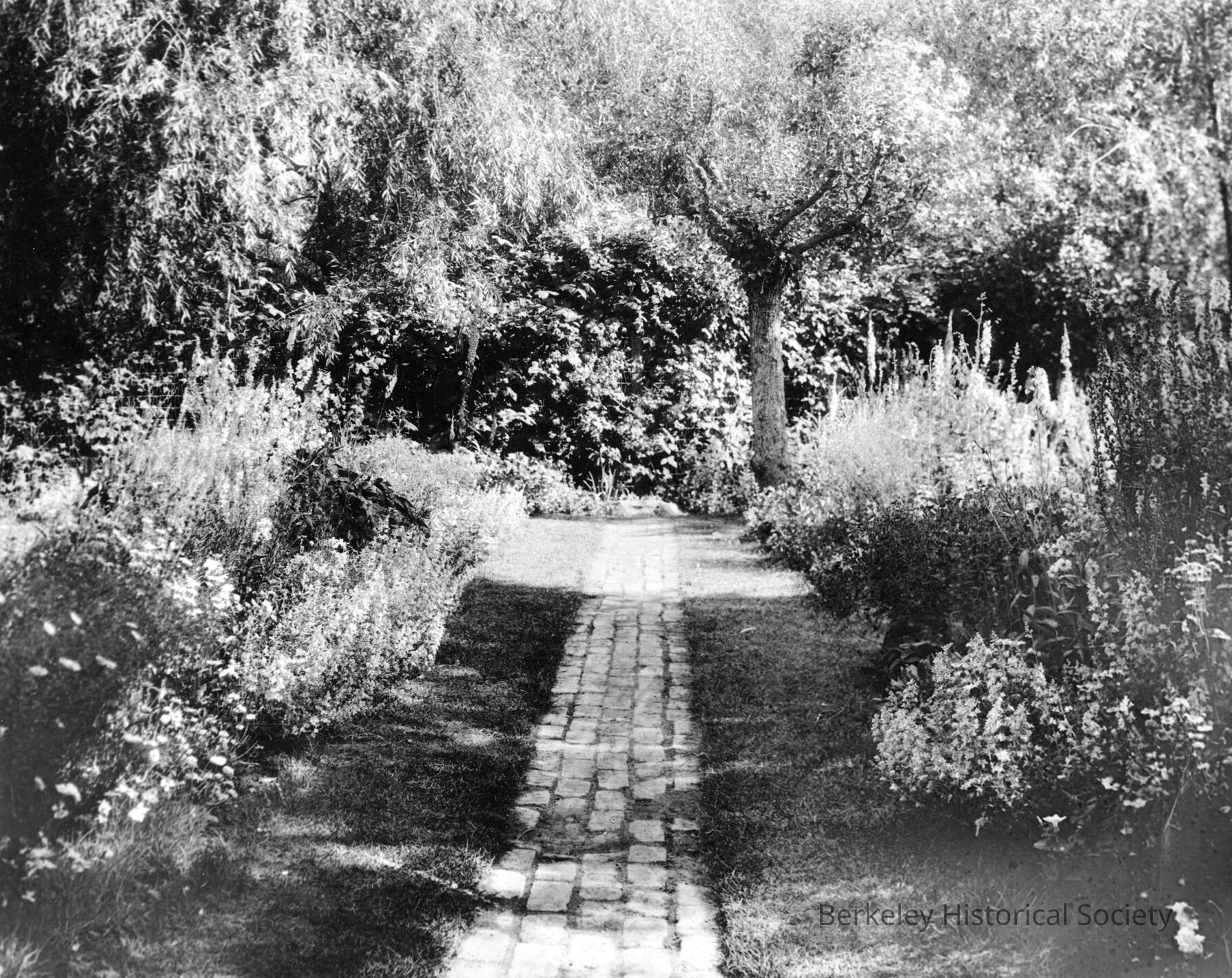 Brick path in garden on Camino Real, Berkeley
