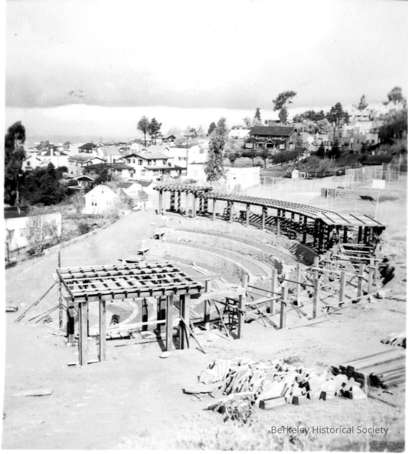 Rose Garden with pergola under construction; view from above.Other Names and Numbers
