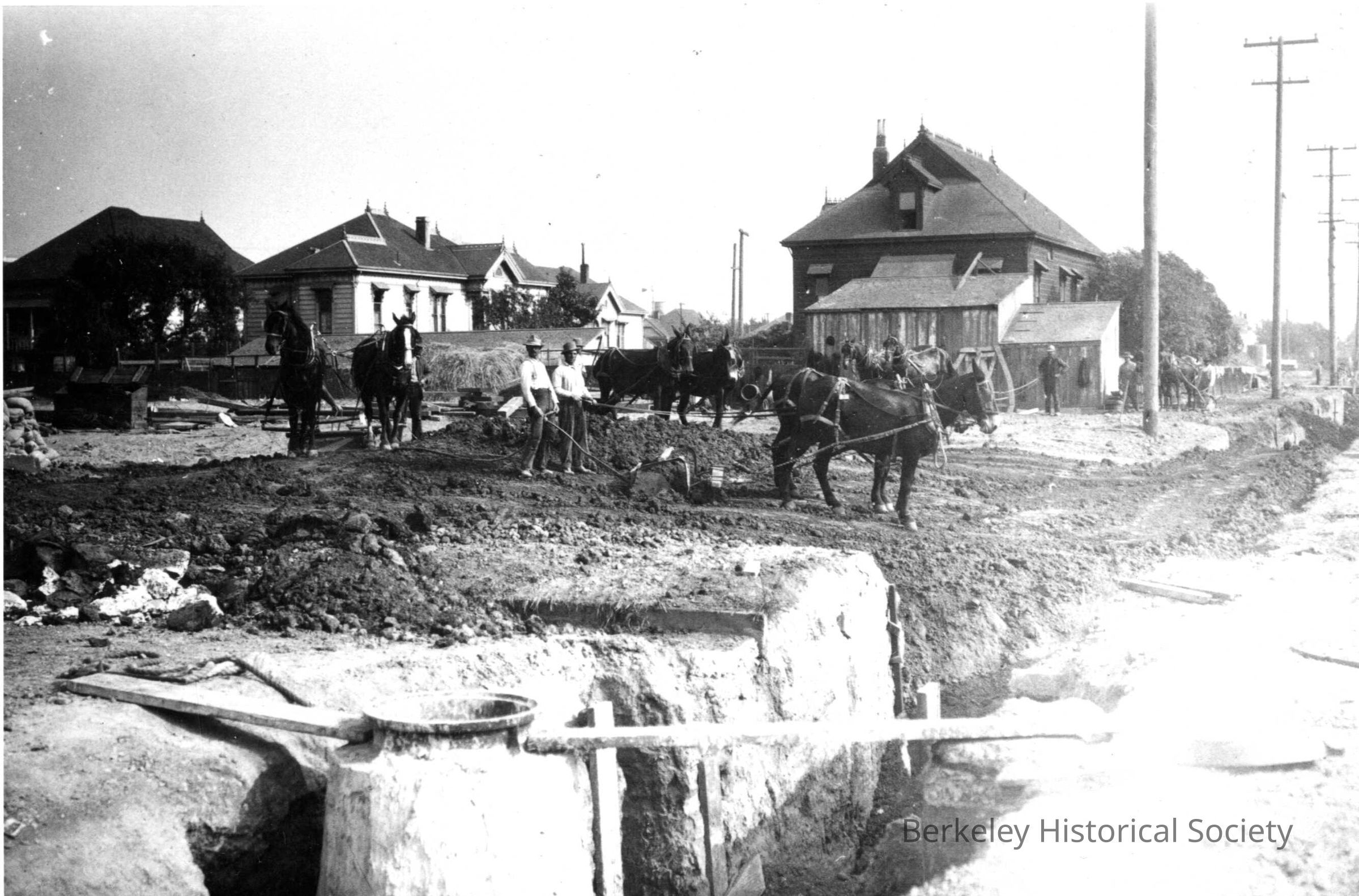 Workmen, horses