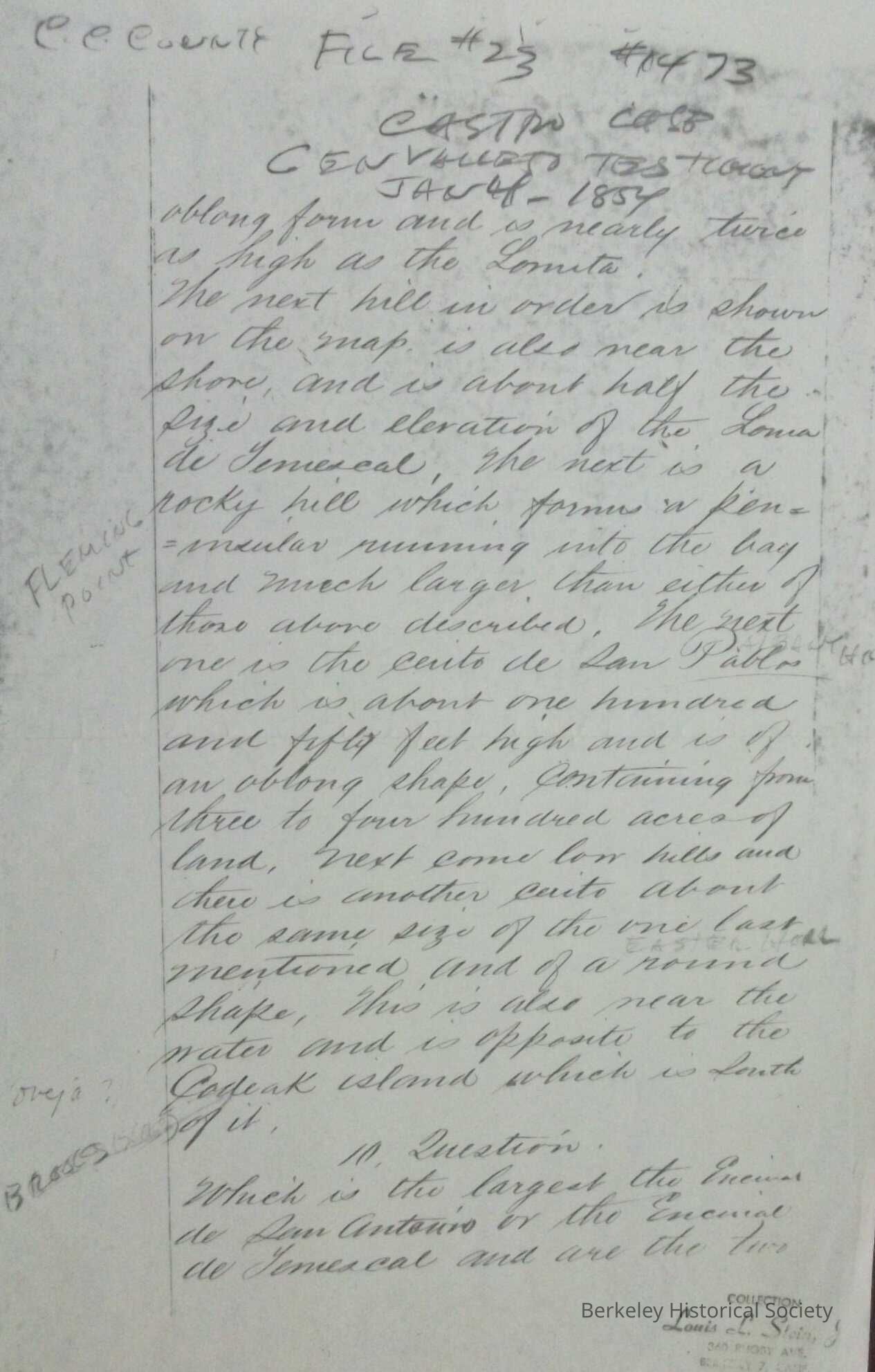 No 96, Juan Jose Castro & Victor Castro, Sobrante, Filed in the office June 11, 1854. Included is a written description of property.Lexicon