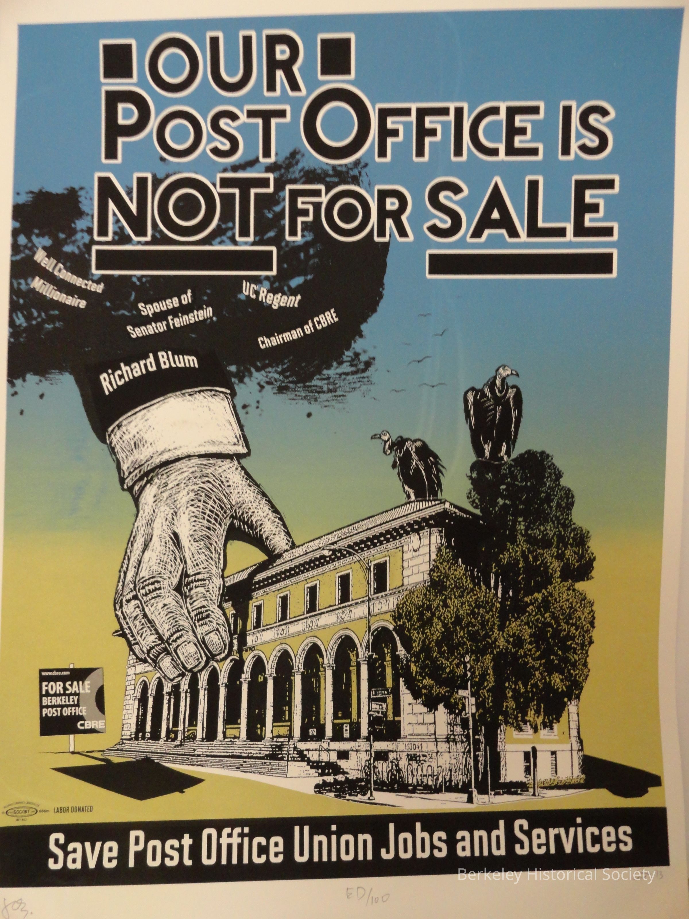 Posters: Save Our Post Office, and Our Post Office Is Not For Sale. Three posters.
