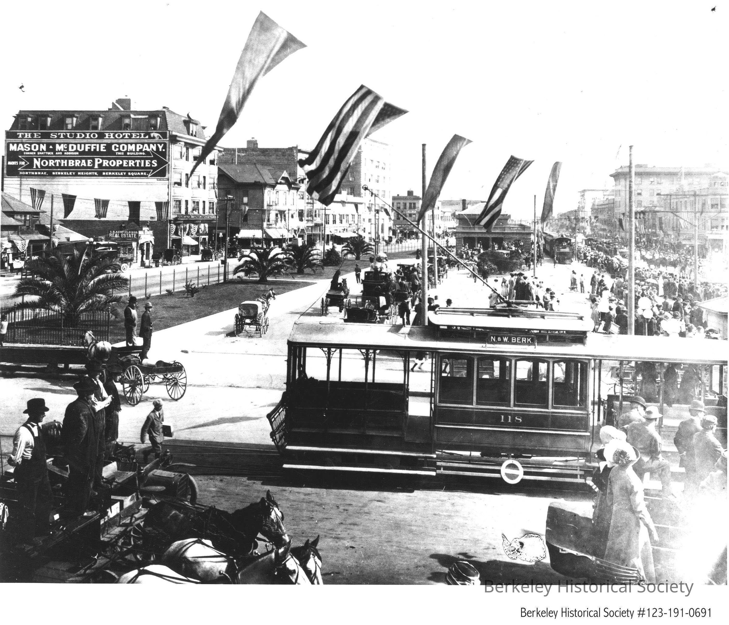 Mason-McDuffie Properties, Shattuck & Addison, Kenfield, Stephen Real Estate, 2033 Shattuck, The Studio Hotel, Streetcar, S.P. Berkeley Depot, Streetscape