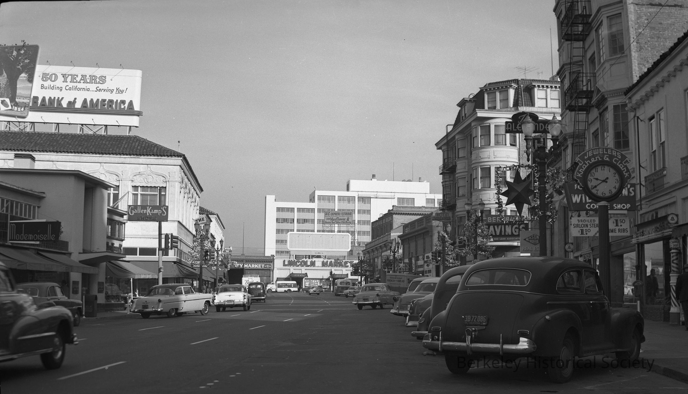 Shattuck approaching Addison, 1957, new State public Health Bldg in background