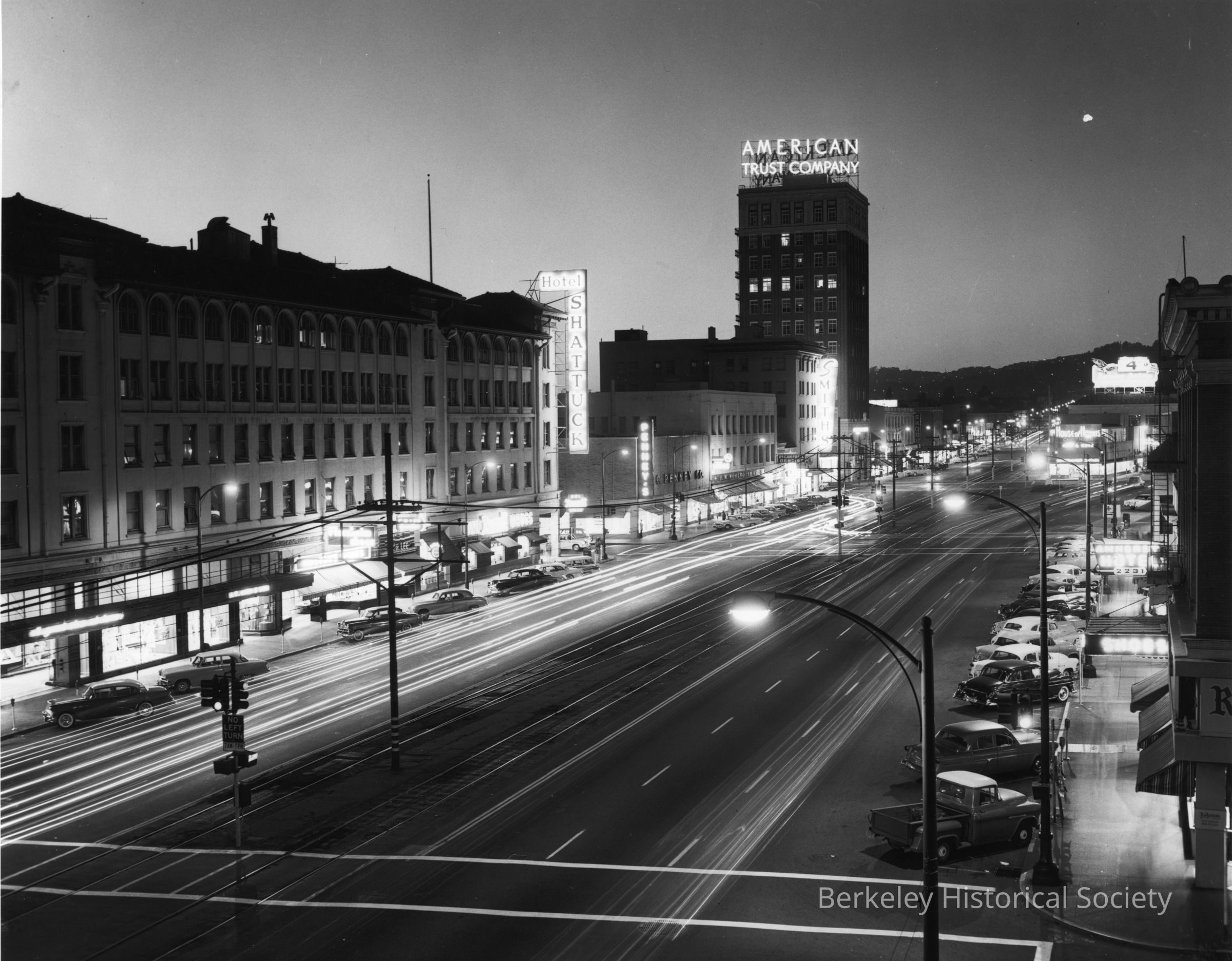 Night scene, north on Shattuck from Allston Way.