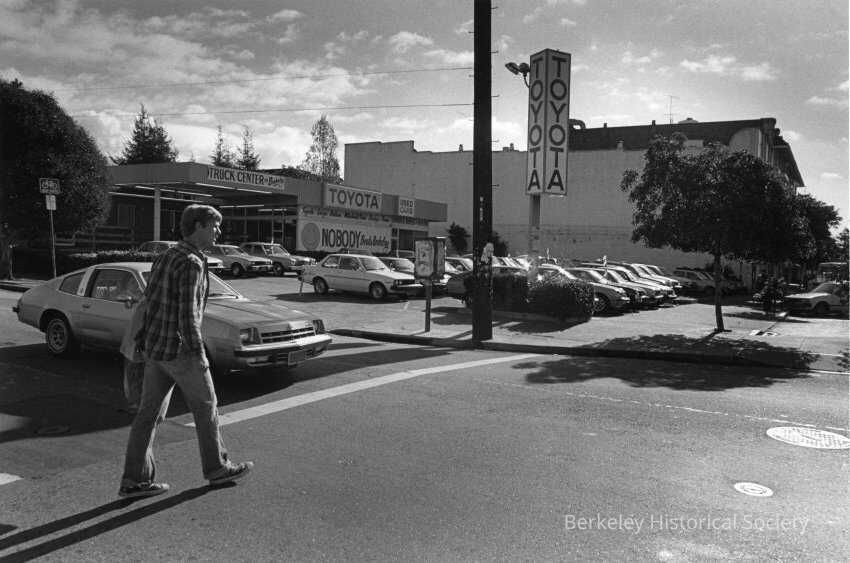 Street scene, Berkeley Toyota at the corner of Shattuck and Blake.