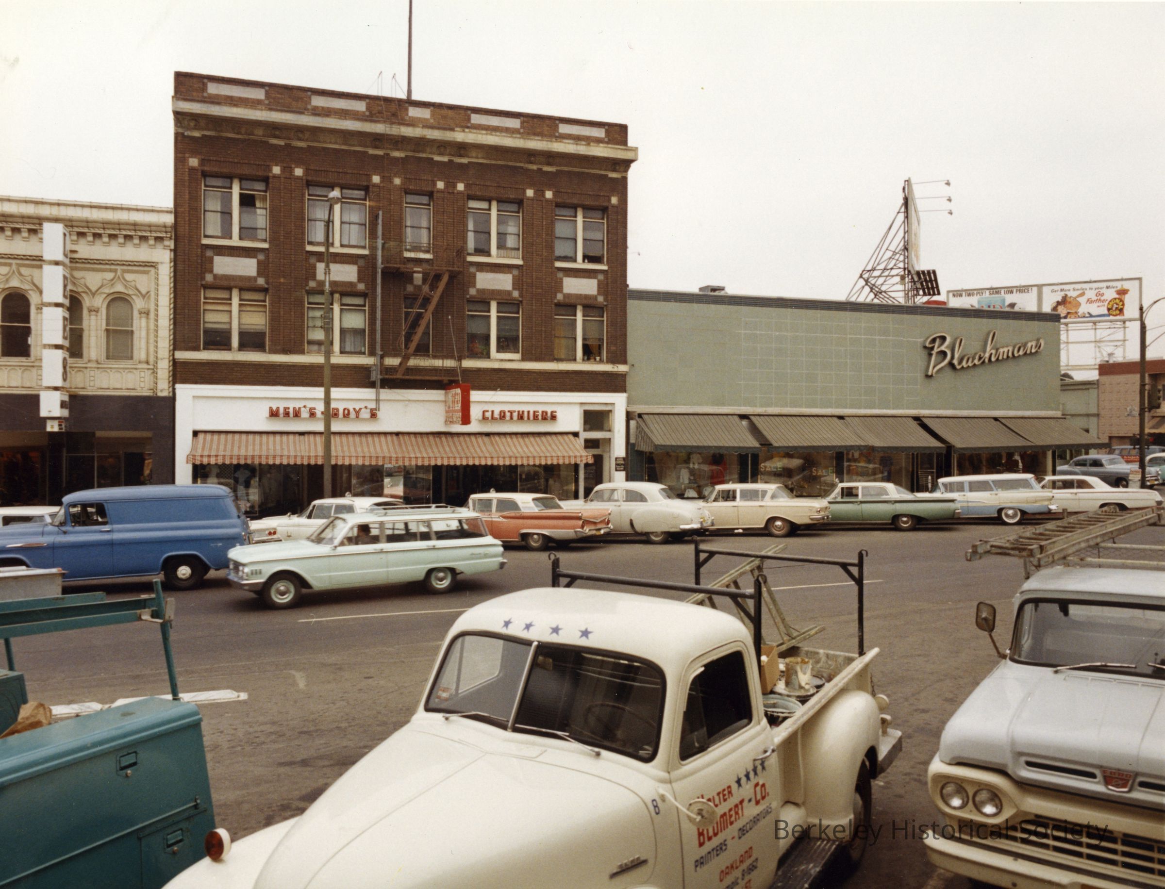 West side of Shattuck Avenue. Signs include Blachman's
