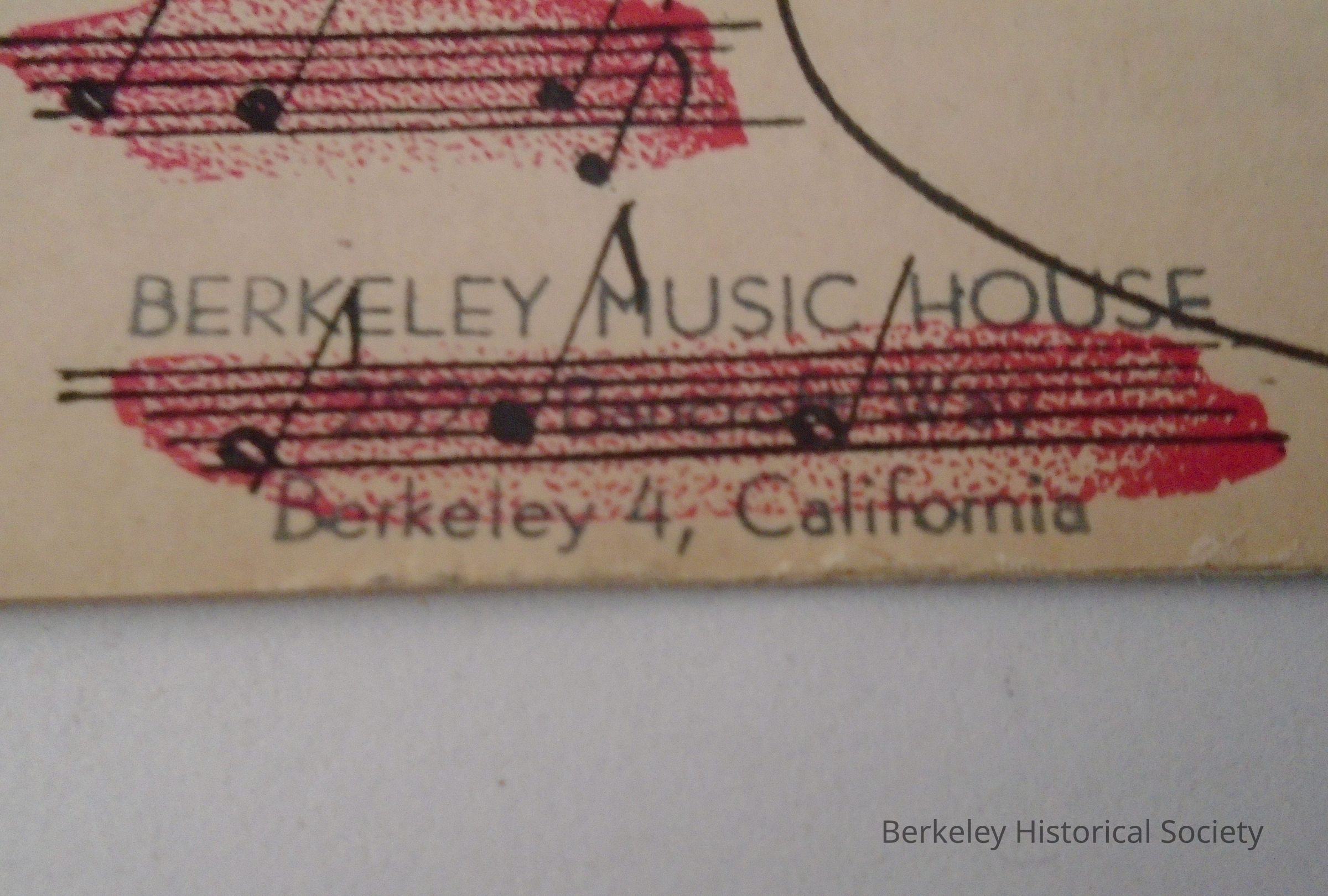 Paper sheet music from Berkeley Music House, 2522 Bancroft Way, Berkeley 4, California. (Store stamp at bottom).