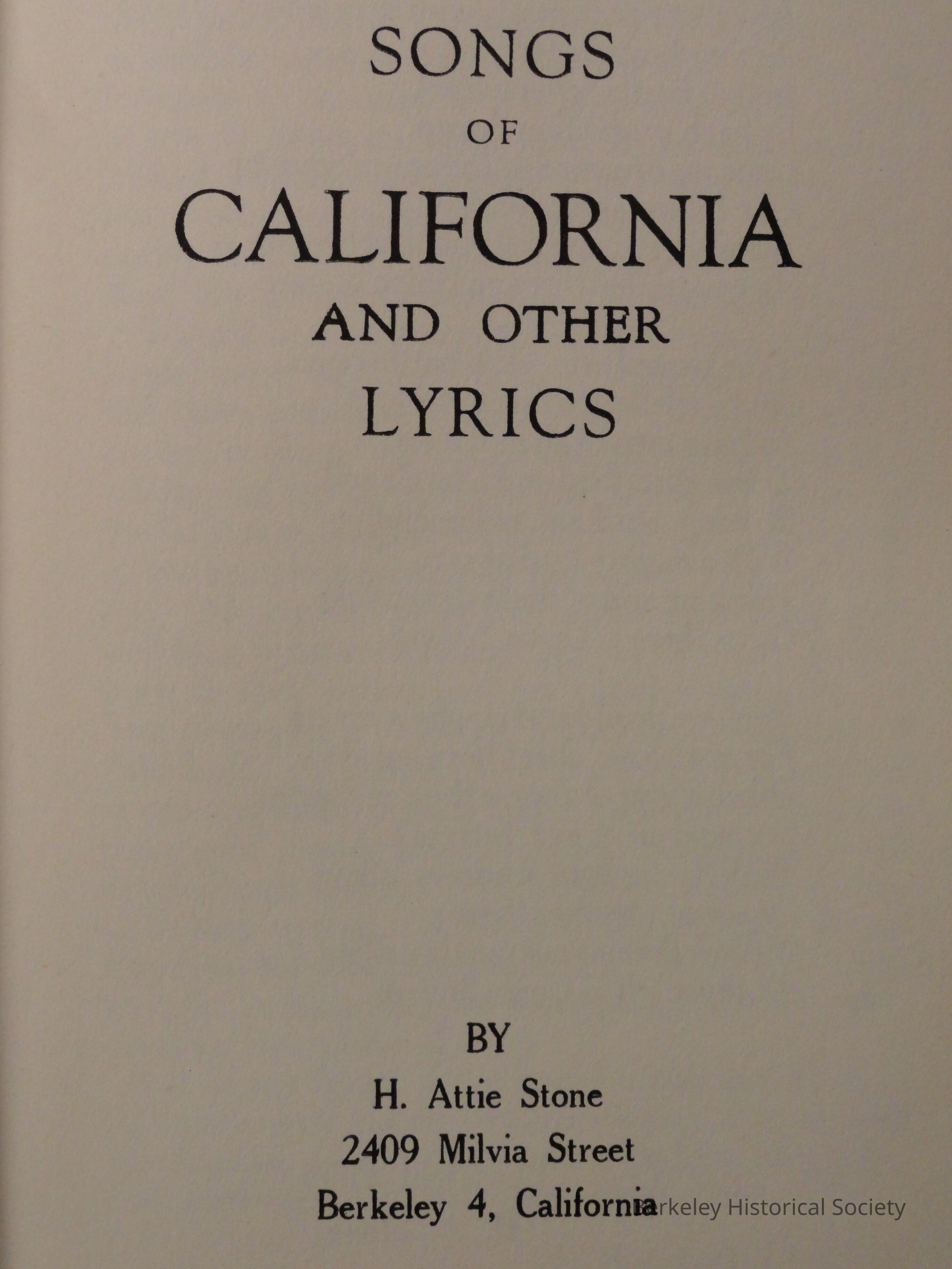 Songs of California and other Lyrics (PS3537.T6685 S6)