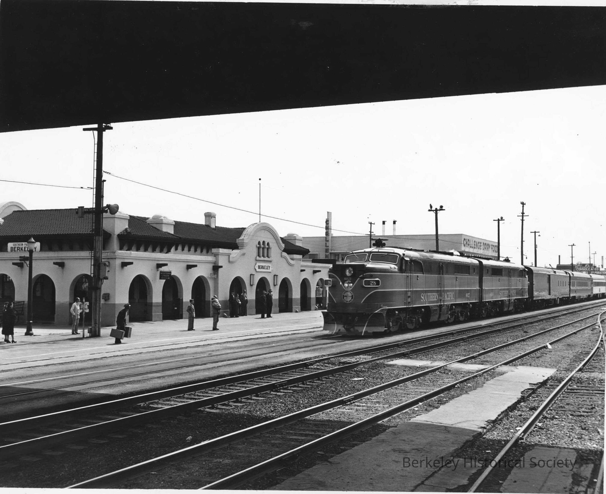 Passenger diesel train at 3rd St Station, 1950 S.P. Train 28; "San Francisco Overland"