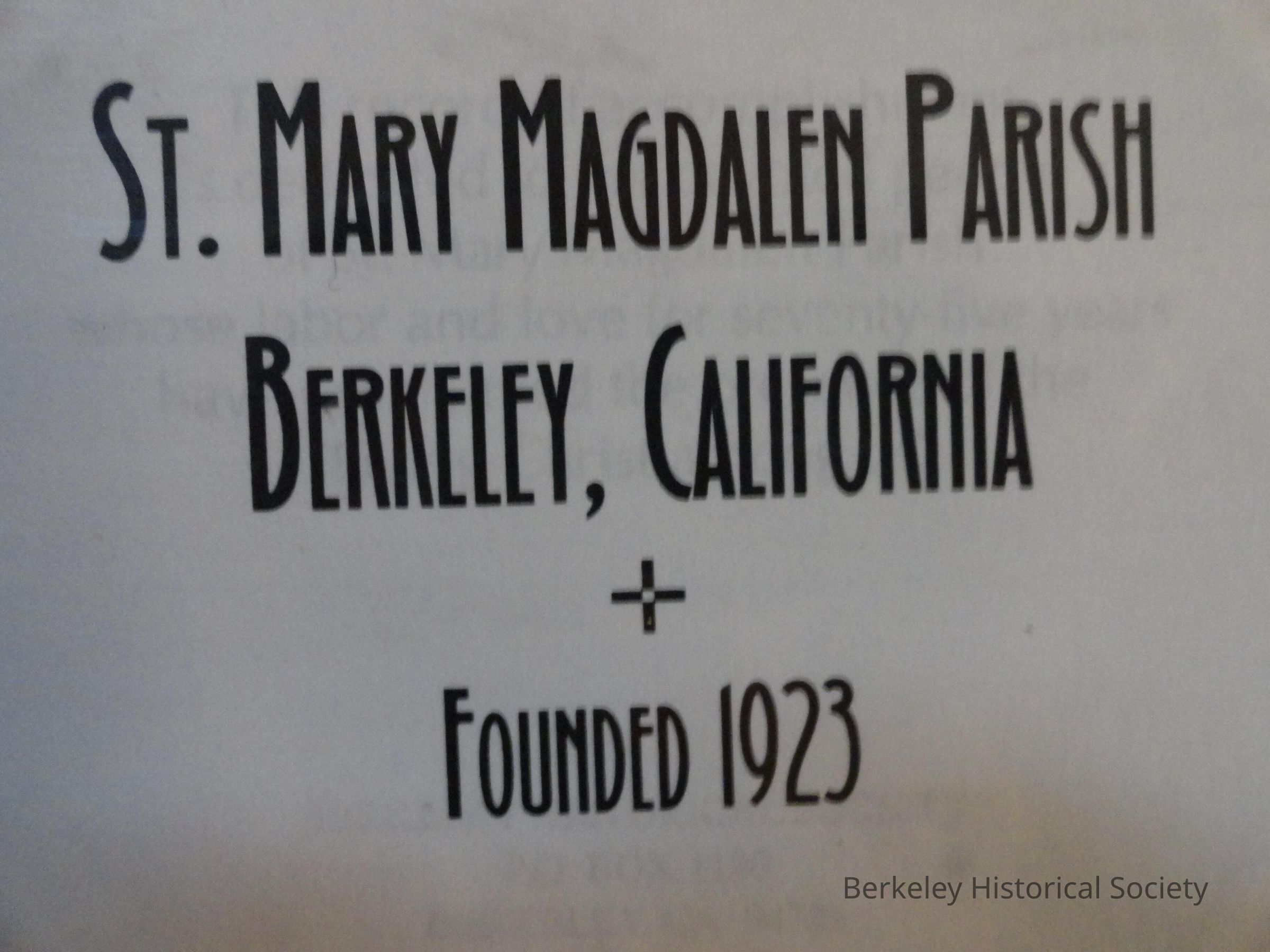 St. Mary Magdalen Parish Berkeley, California, Founded 1923Entry/Object ID