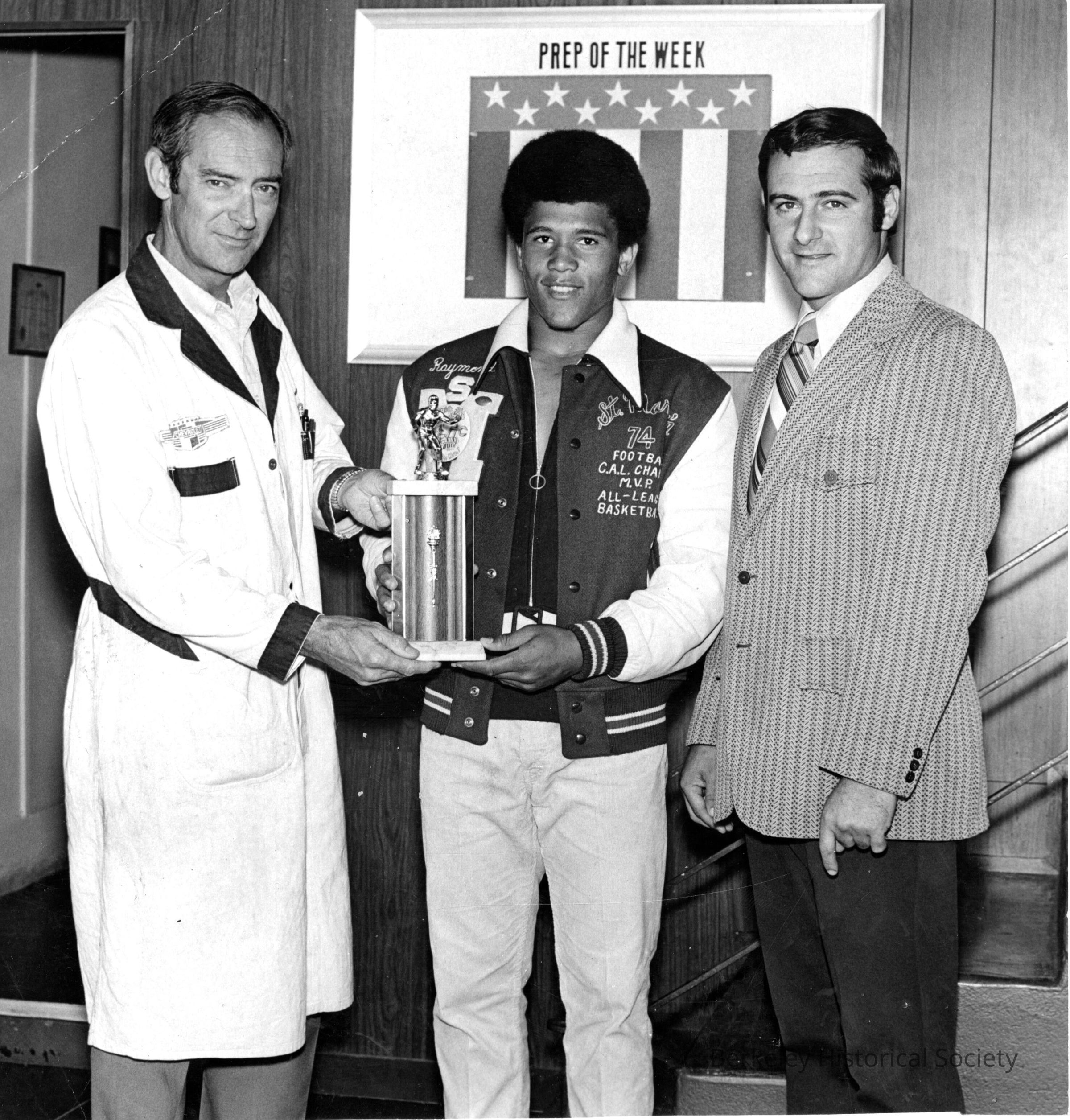 Prep of the Week; student being presented with trophy.Other Names and Numbers