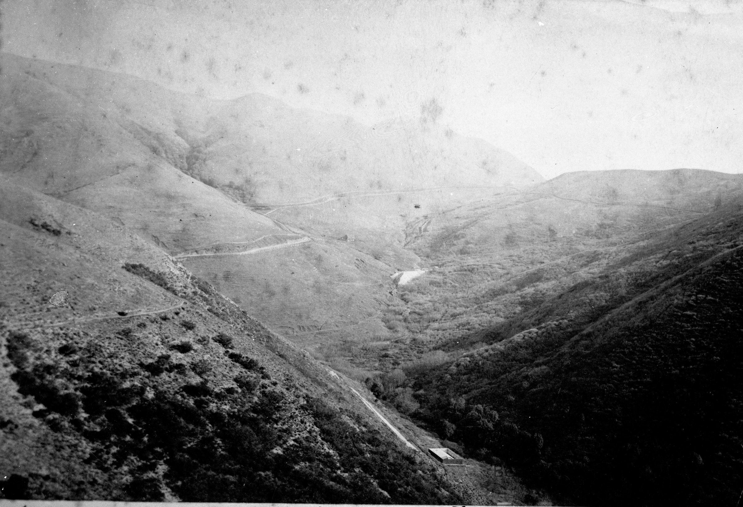 Stagecoach Road to Martinez, 1886 Waterworks tunnels. One tunnel on left brings water from Easter Slope gathering basin. Fish Ranch Road area.