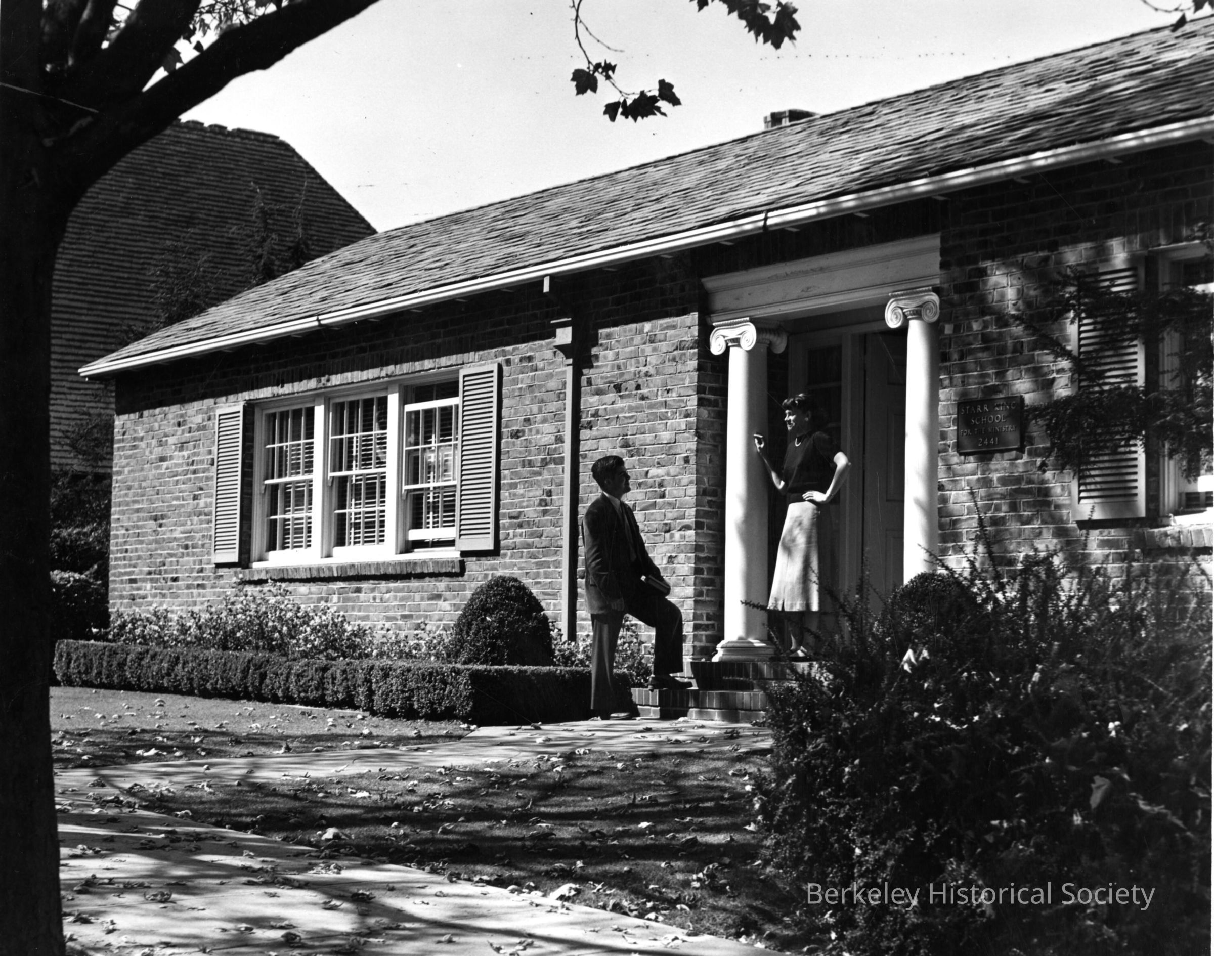 Brick building on Le Conte Avenue; two people at porch.Other Names and Numbers