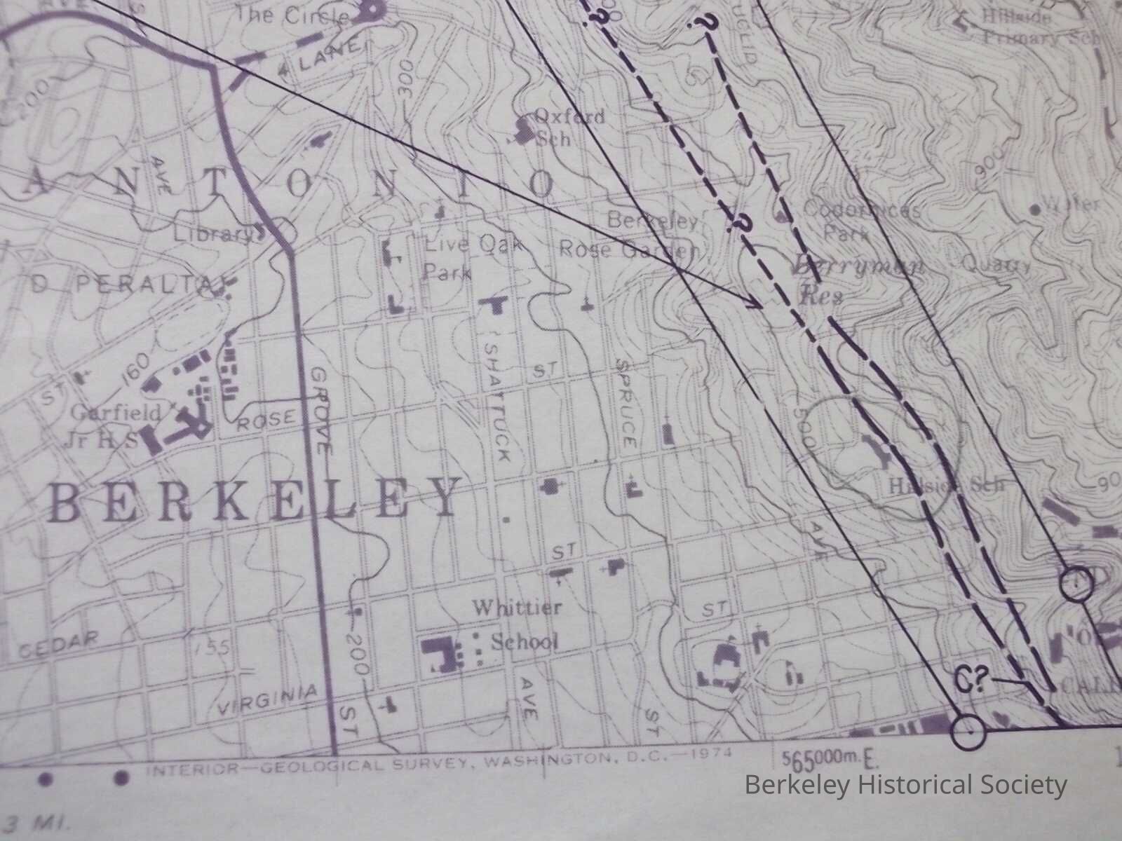 Fault zone is at crest of Berkeley Hills, (Marin/Euclid) Cedar/La Loma, "Massive Landslides Fault Location Uncertain,Lexicon