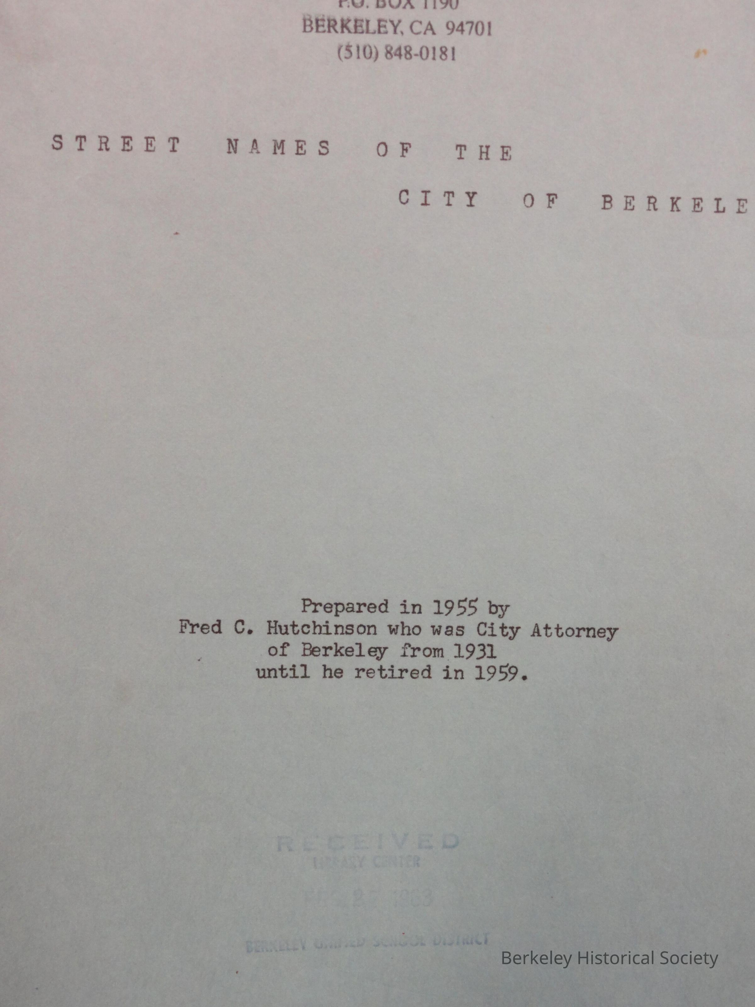 Street Names of the City of Berkeley