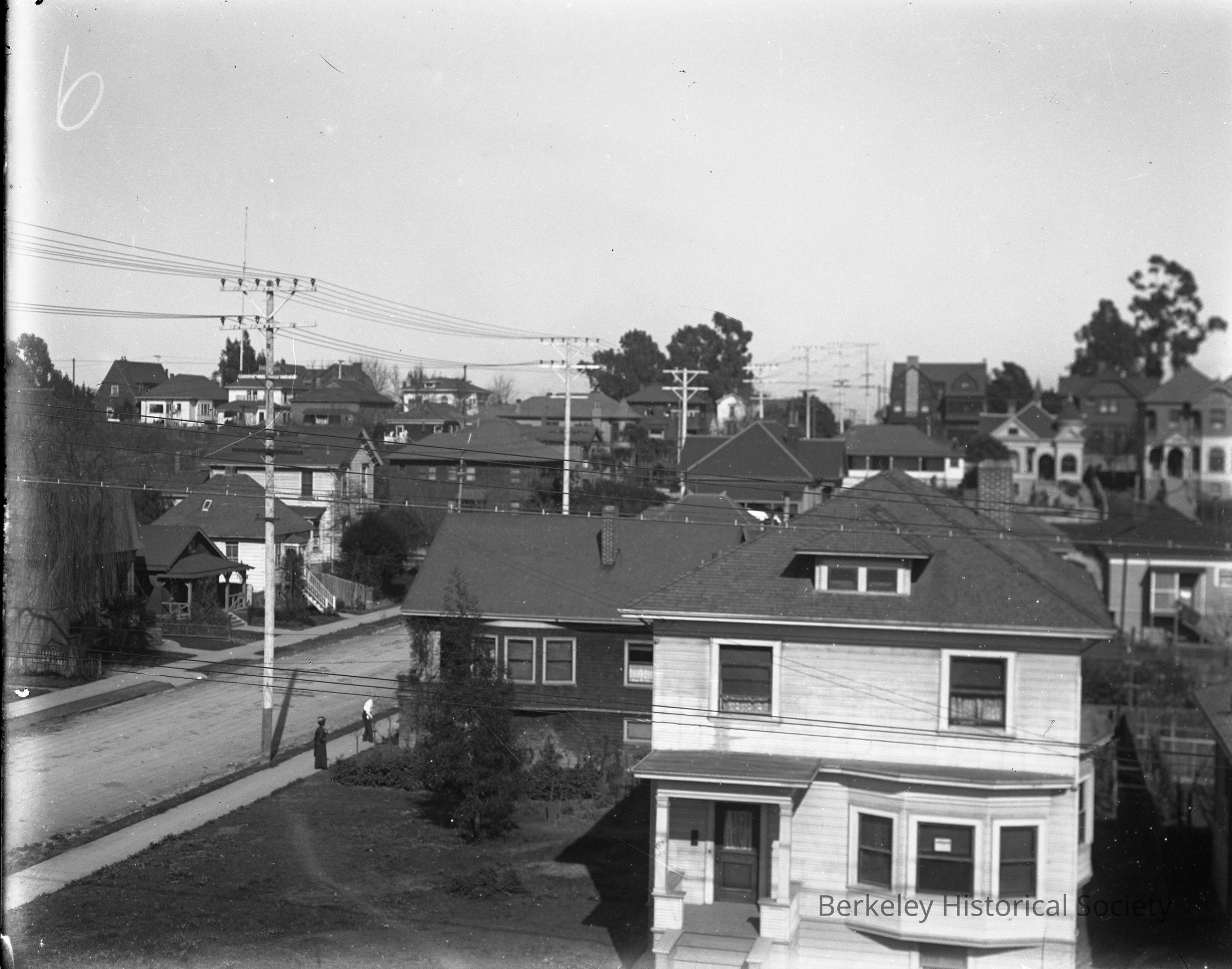 Street scene residential neighborhood, a few empty lots, possible view is westerly.