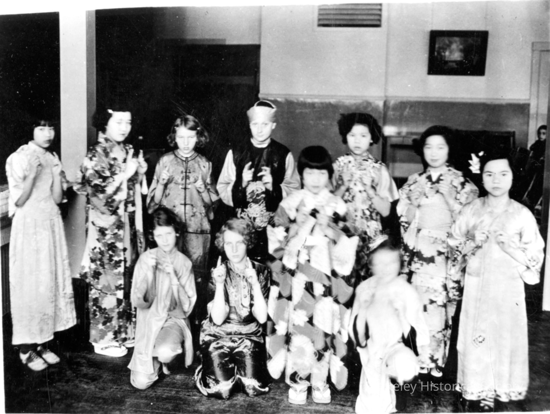 Students pose in costumes at Jefferson School