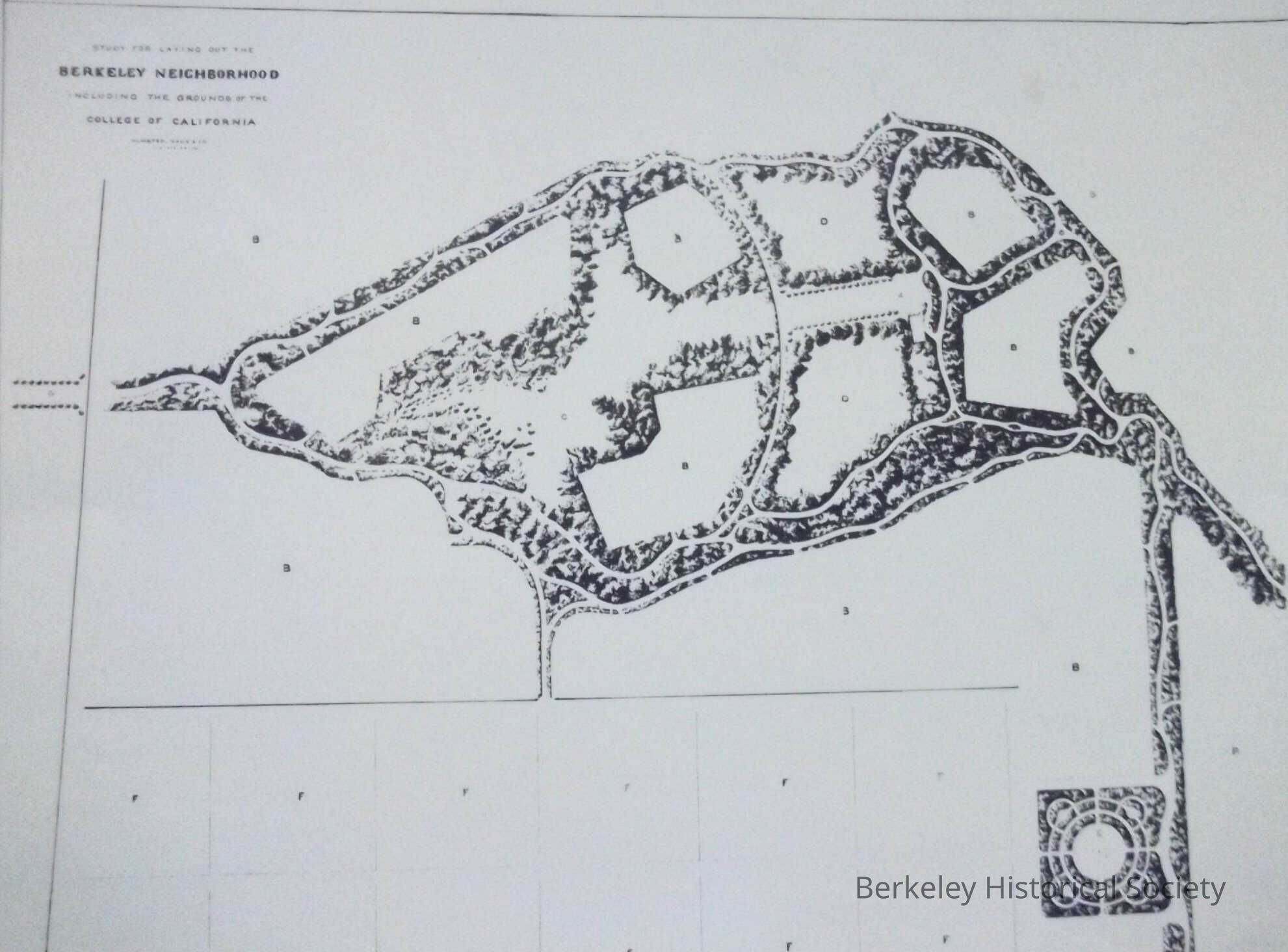 Map of area around future University of California, by Olmsted, Vaux and Company. Reproduction
