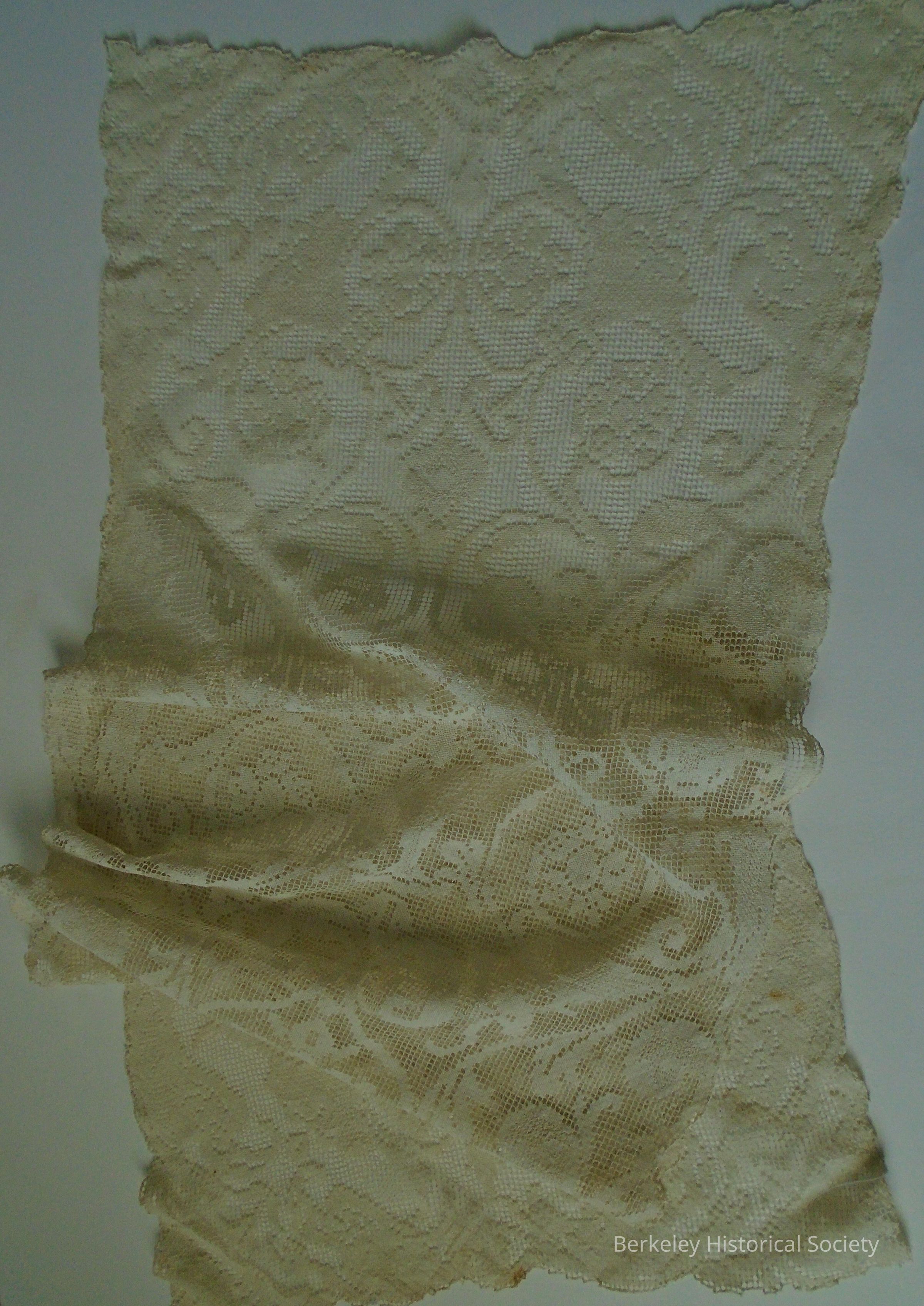 Off-white lace table runner. Used by the De Fremery family of Berkeley.