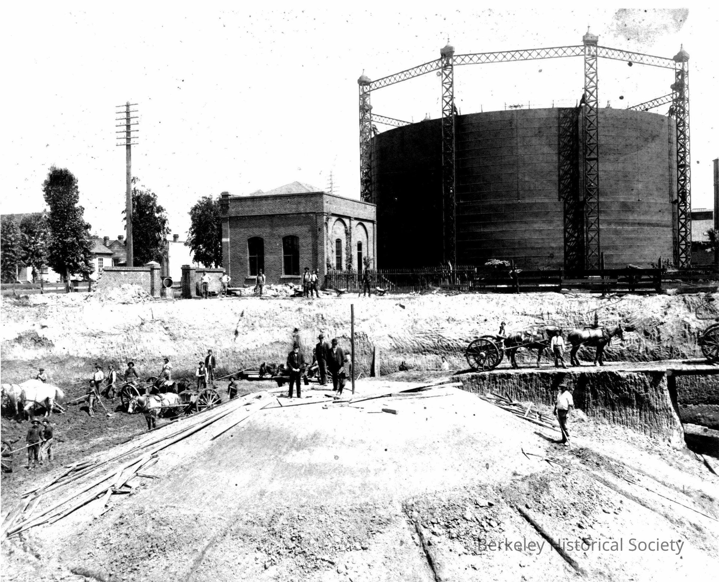 "Solano Ave. Power Station - gas tank, horse graders"