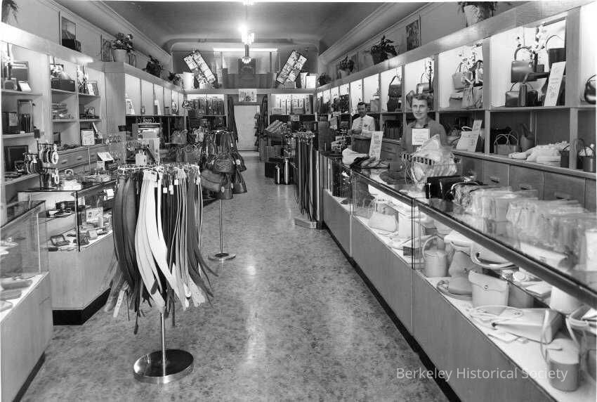 Interior of Taylor's Leather Goods with store display of purses, belts, and other assorted leather goods.Lexicon