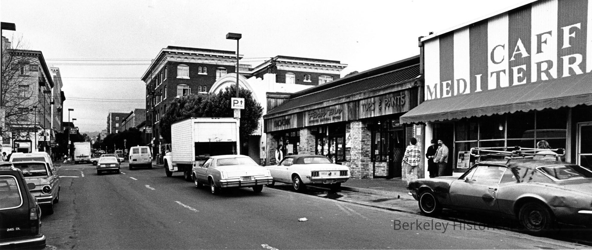 View north from mid-block between Dwight Way and Haste Street; portion of Caffe Mediterraneum to the right.Other Names and Numbers