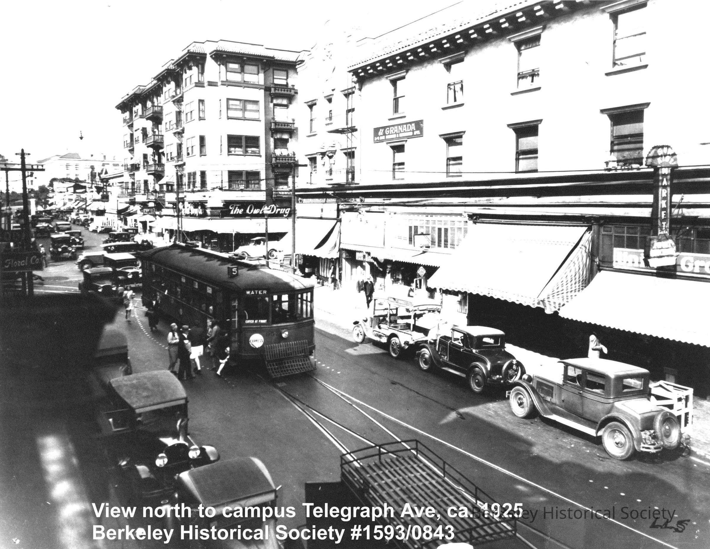 Granada Hotel, Owl Drug, in distance Sproul HallMade/Created