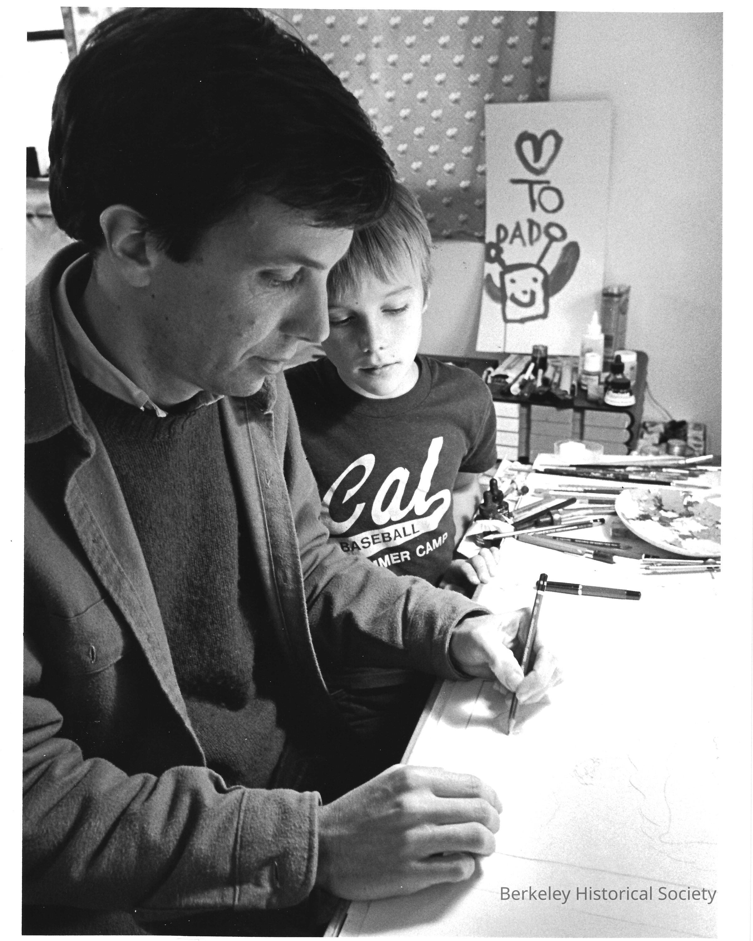 Author of childrens' books; one with son. 2 photos
