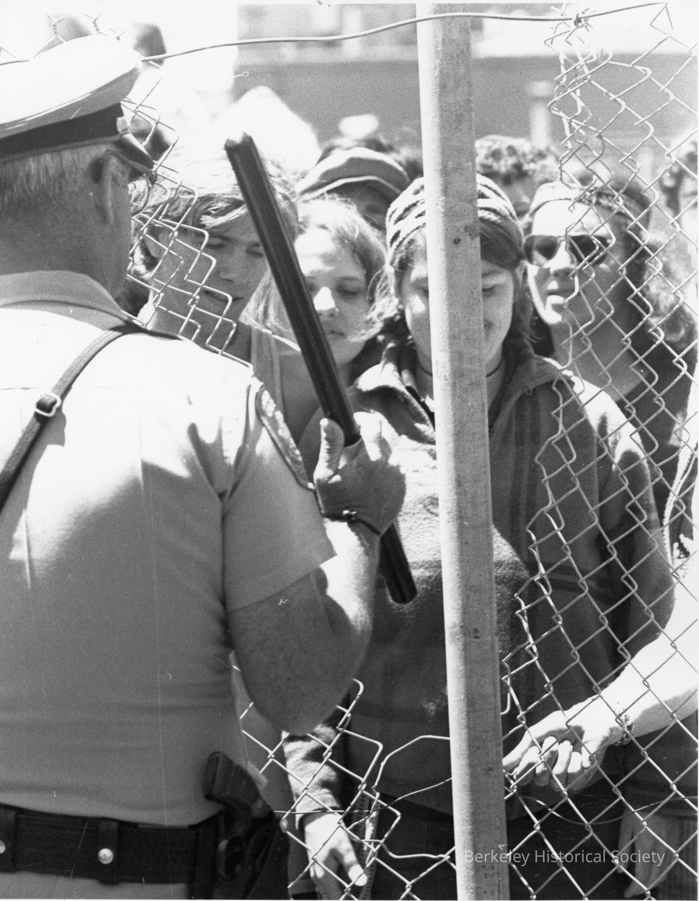People's Park Riot, looking through fence. RESTRICTED USE ©Harold Adler